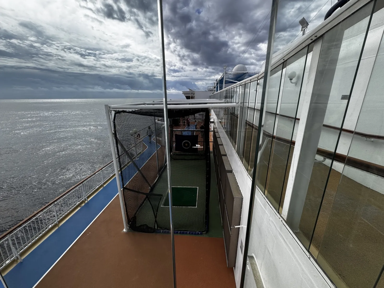 Two golf driving nets (port and starboard side of ship) for practice swinging and driving.Sugarcane Mojito Bar