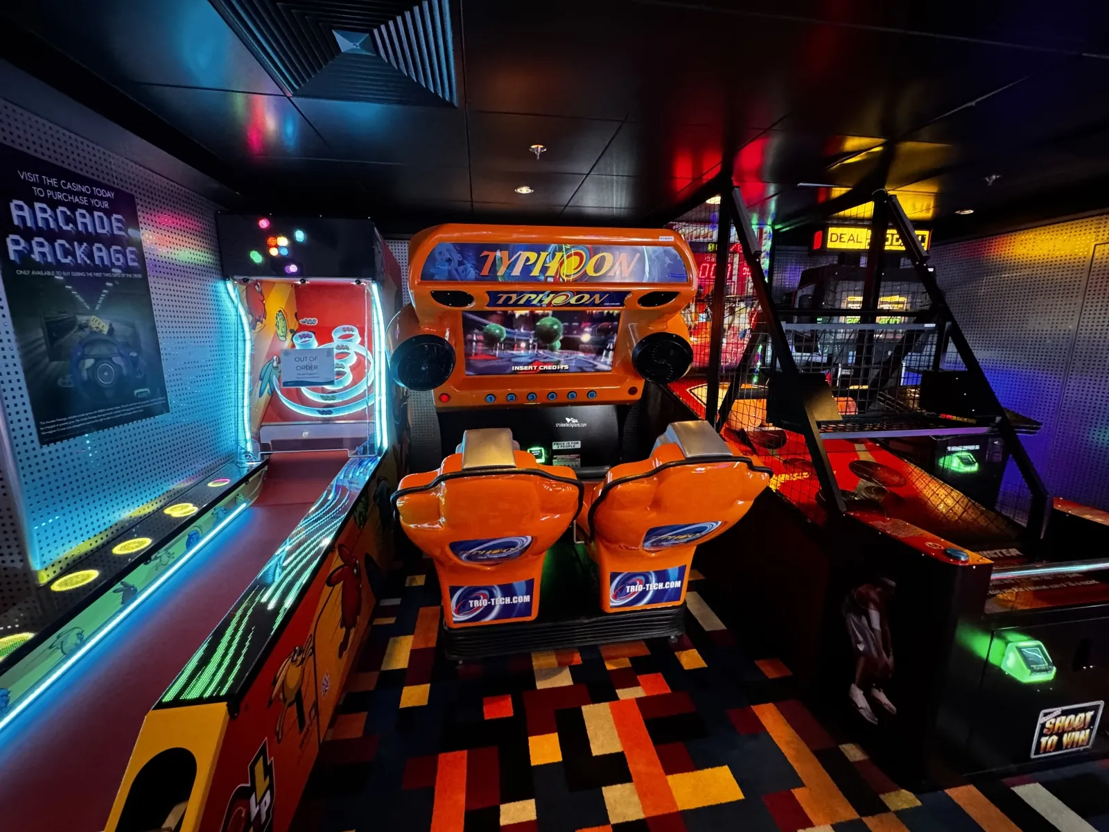 Stadium seating and lounge area around the pool that spans deck 12 and deck 13.Deck Games
