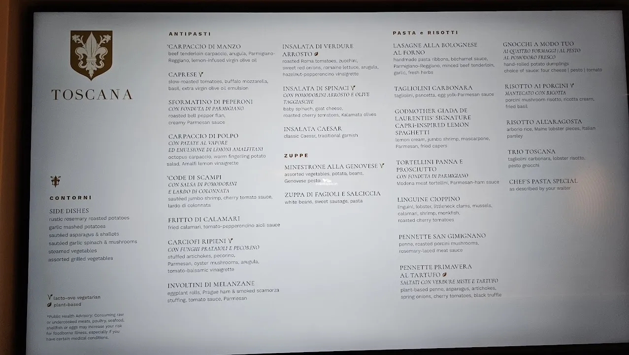 It is the ideal venue for a romantic or special occasion, tables for two line the windows and dishes are served on Versace china. Italian food.Polo Grill