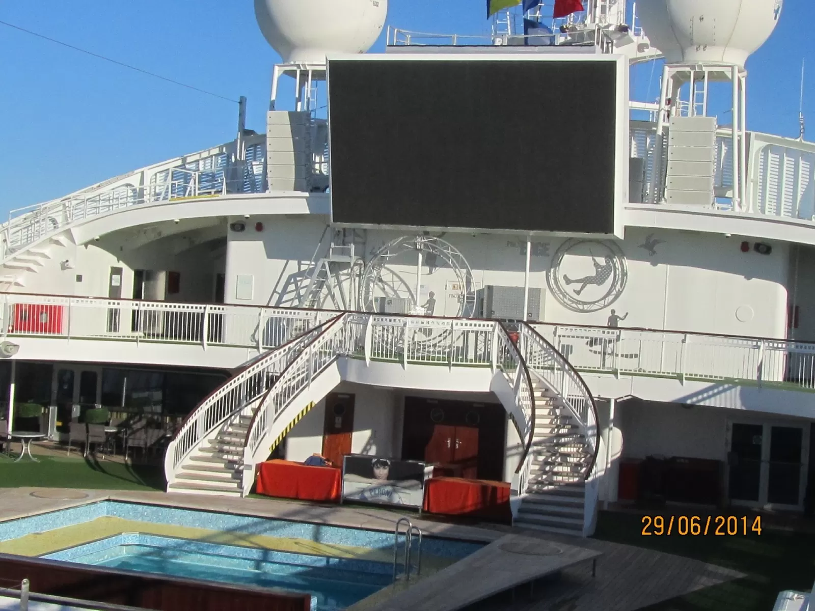 The largest adventure program at sea offering a cargo net race, slack-line bouncing bridge, high ropes, funnel climb, bungee tramp, and more!Big Screen