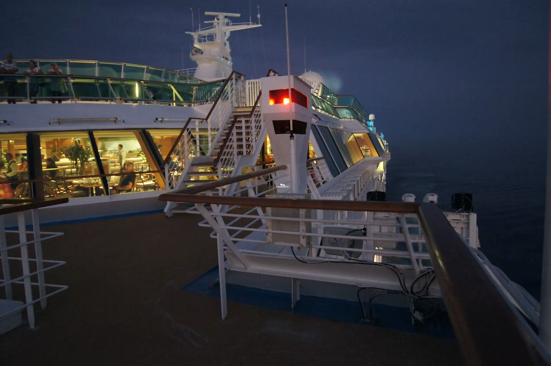 This tool will help you see what is on the deck above and the deck below your stateroom. Don't be surprised by loud chair scraping noise above you.