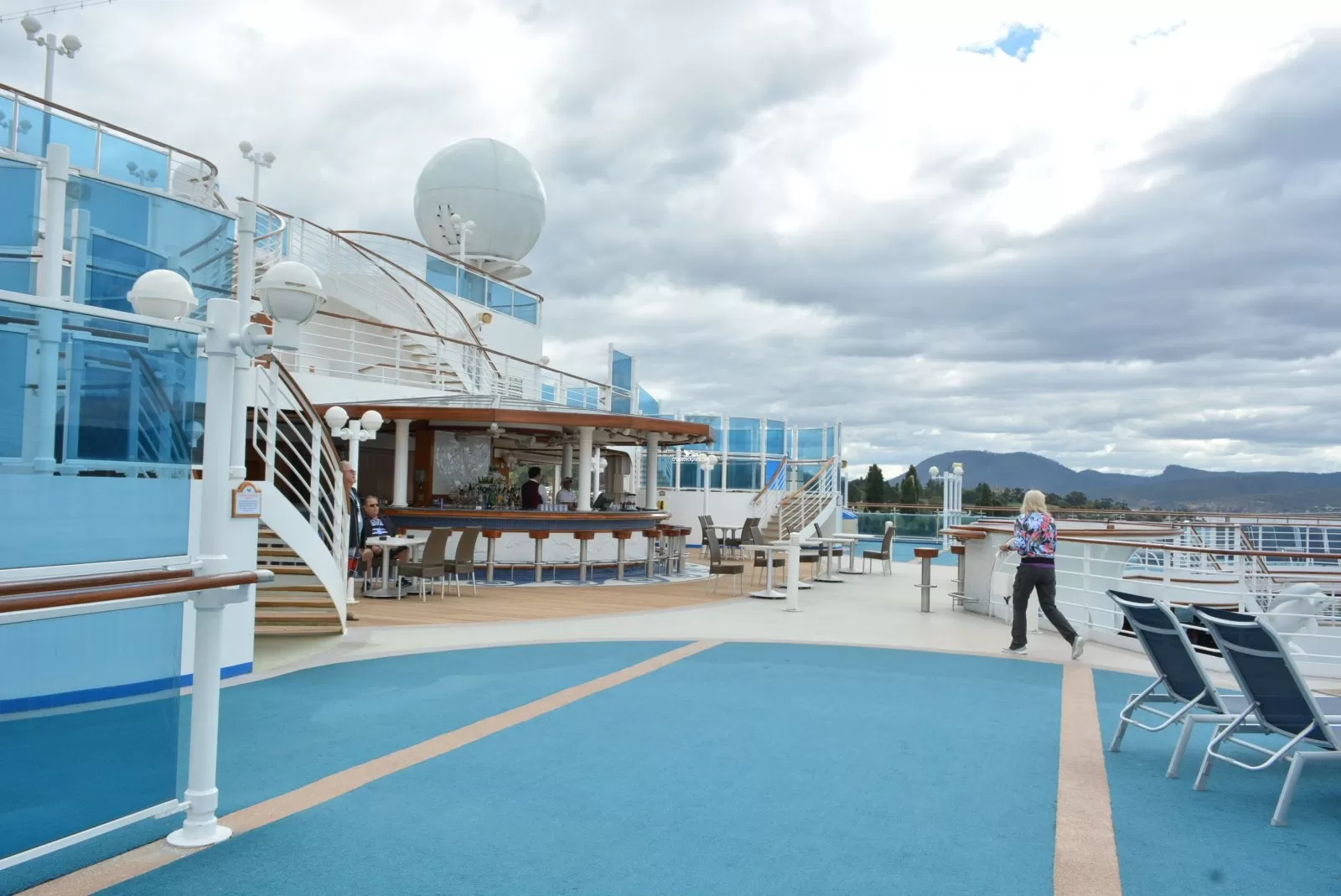 Space to walk and lounge on the Sun Deck.Tradewinds Bar