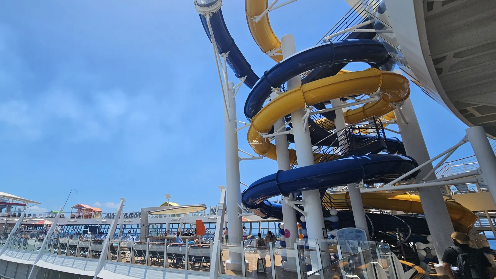Three multi-story waterslides, all of which twist and turn over Central Park 10 decks below. Access from deck 18, exit on deck 15.Splashaway Bay