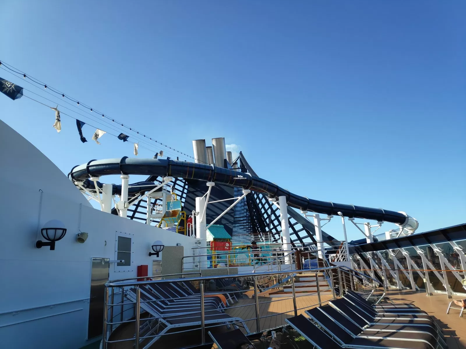 MSC Preziosa's 120 metre long and 13 metre high water slide with a diameter of 900mm and starting from deck 18 and exiting on deck 15.Top Sail Lounge