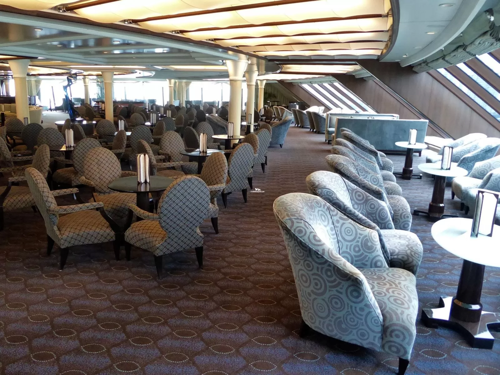 A large lounge with panoramic views. There is a dance floor, and unusually a small indoor smoking area. Afternoon tea is served here daily at 4pm, whilst in the evenings it hosts live music and dancing.Fitness Track