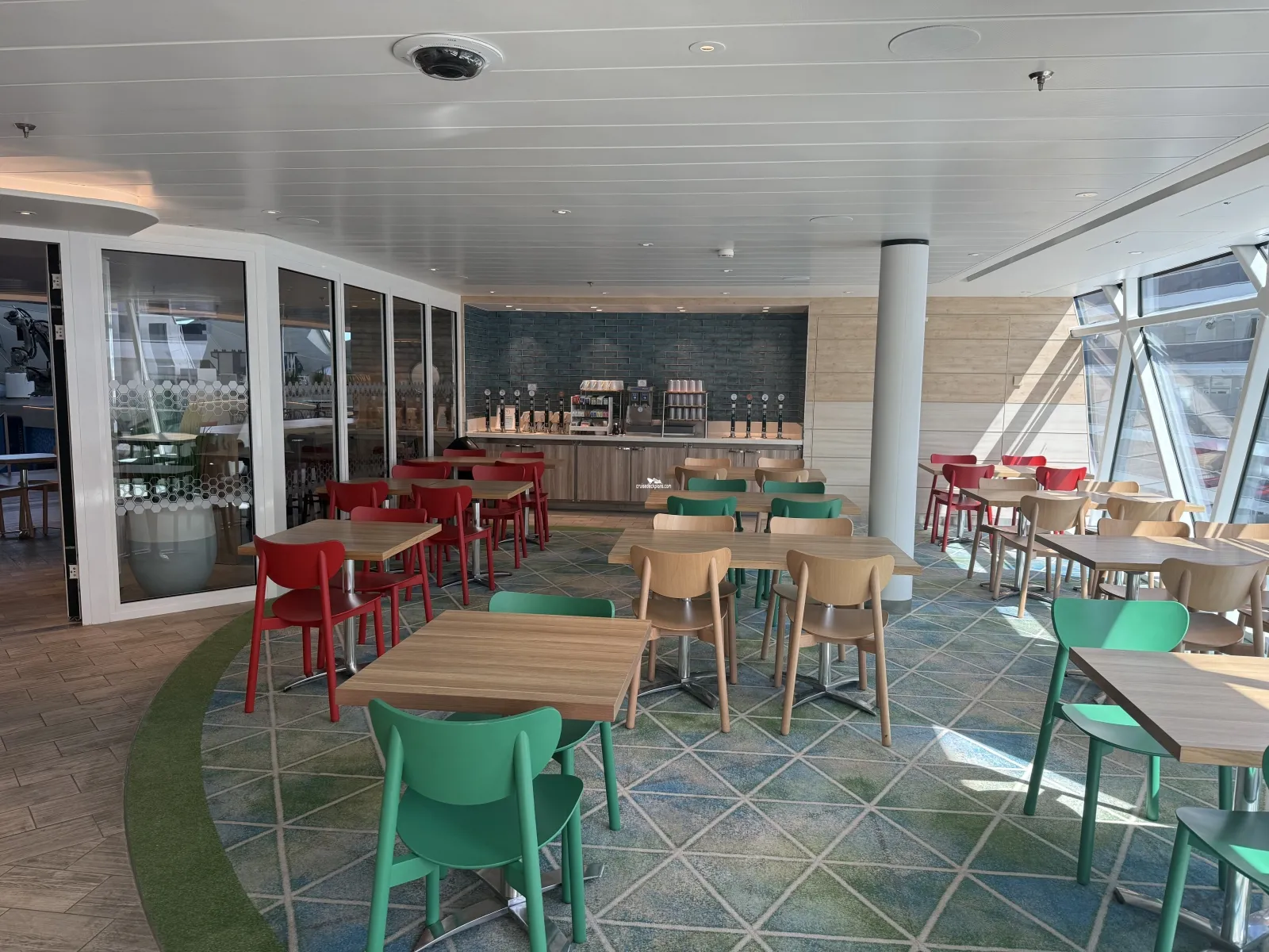Pods (elevated seating areas) at various levels where you can enjoy the wraparound ocean views in the front of the AquaDome. Open day and night. Teens often take over this area at night.Celebration Table