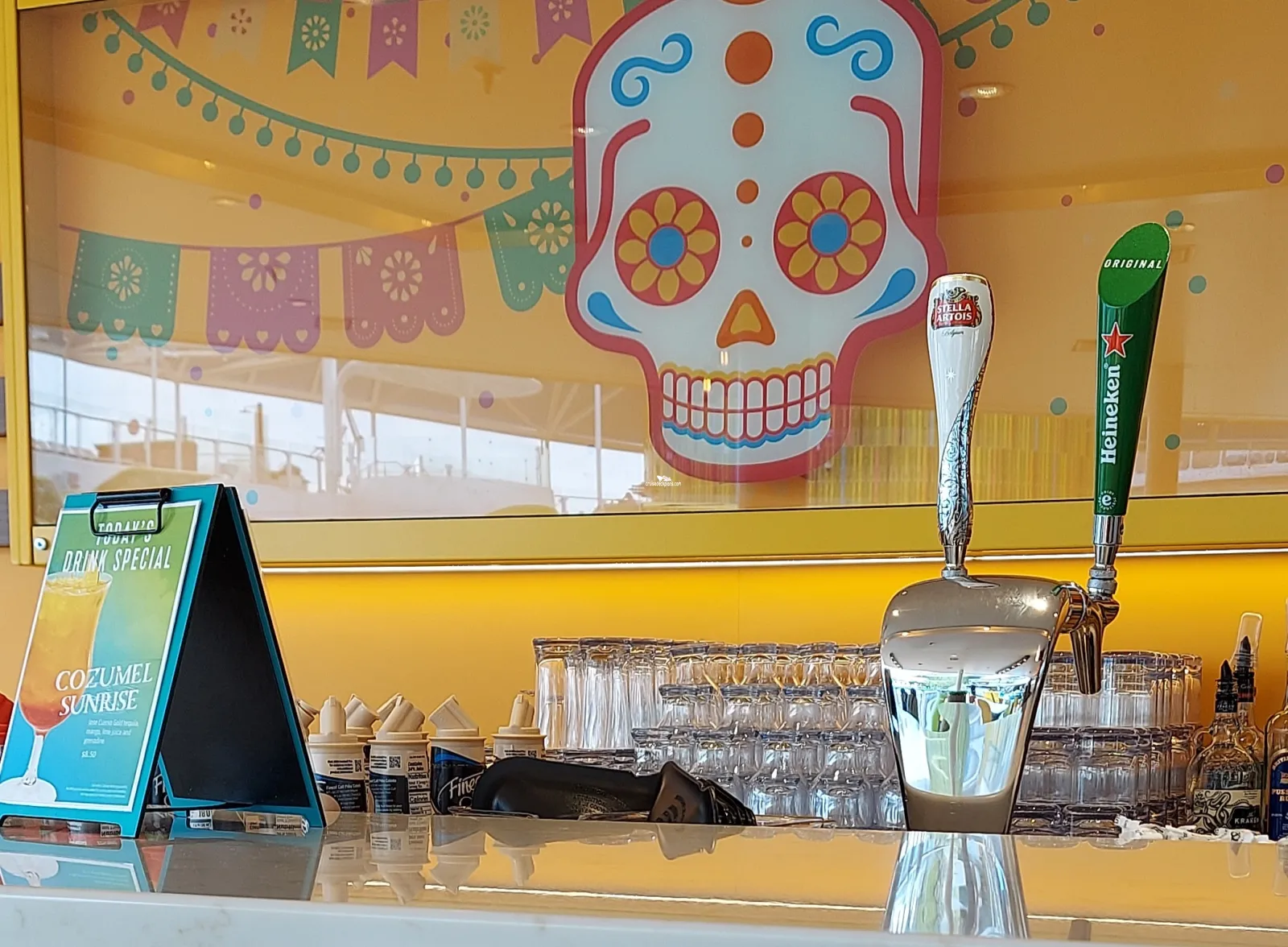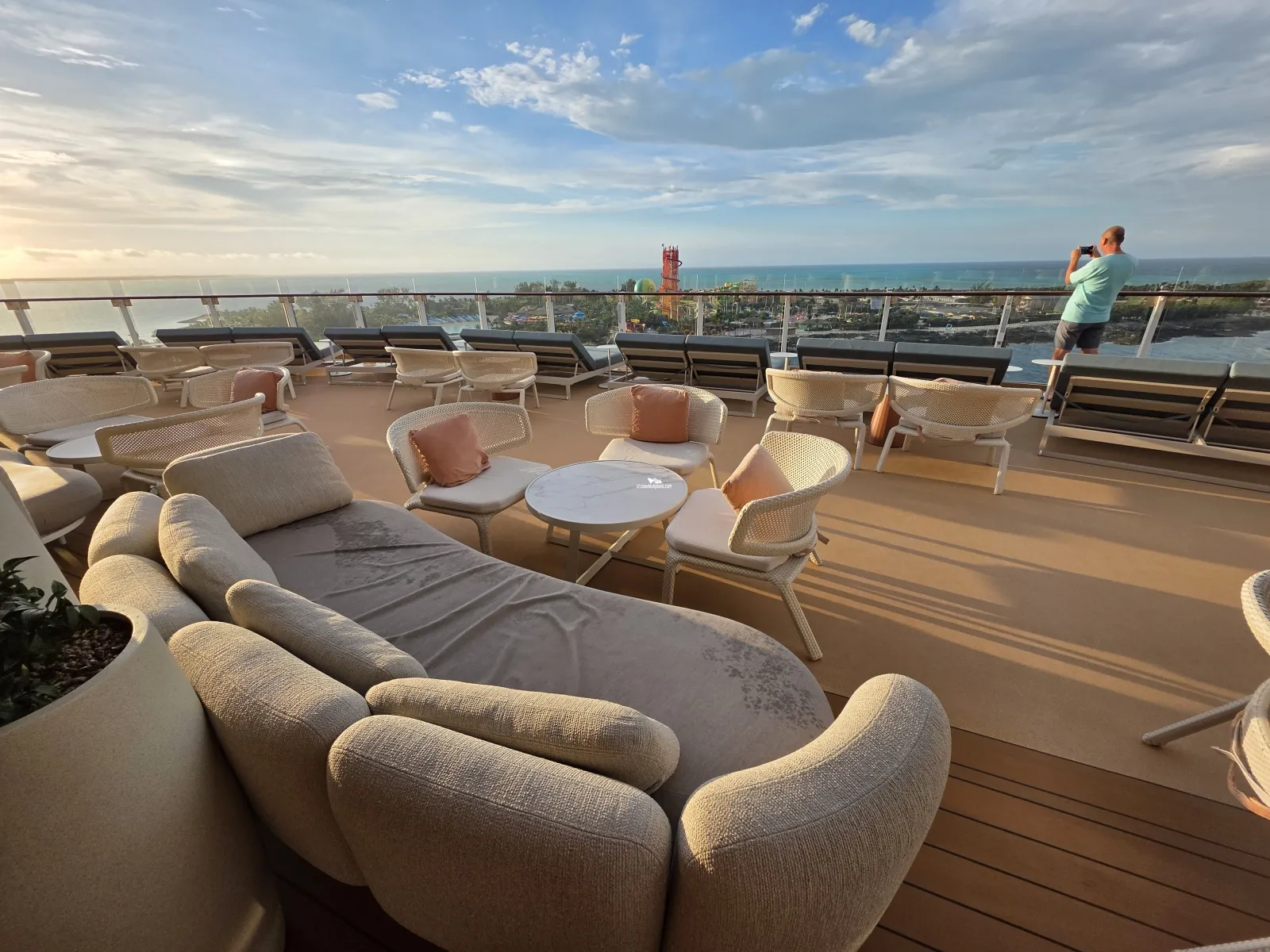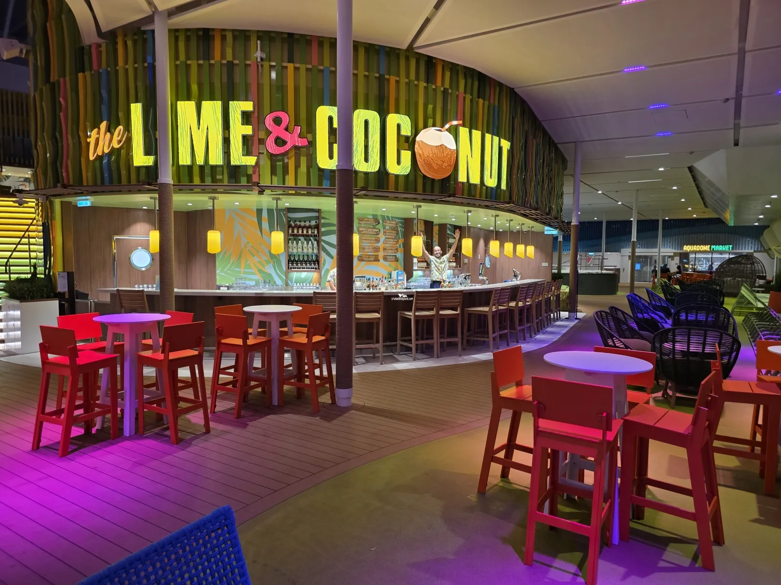 Multi-level and location bar serving outside midship decks.Chill Island