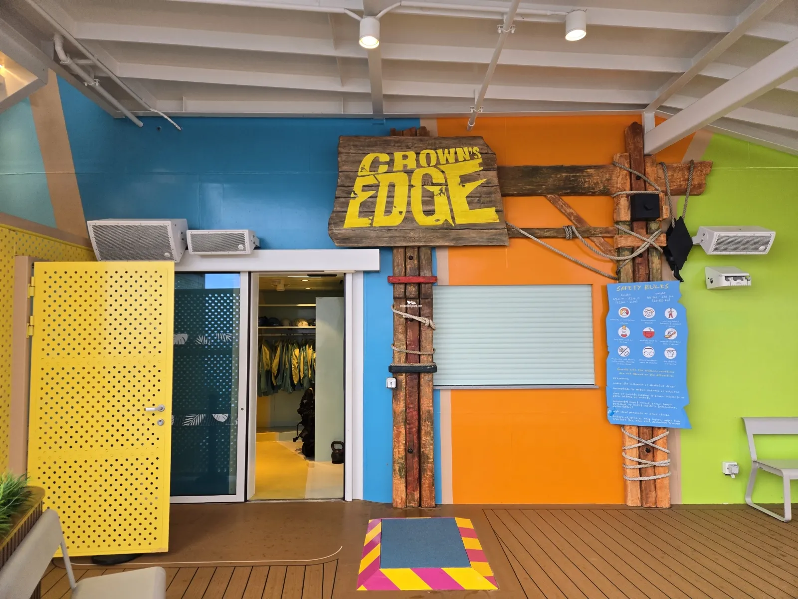 Features stunning views and lounge chairs of all shapes in sizes. You will find bars, pools and hot tubs. You will find ping pong tables and places to eat, but most of all places to chill.Crowns Edge