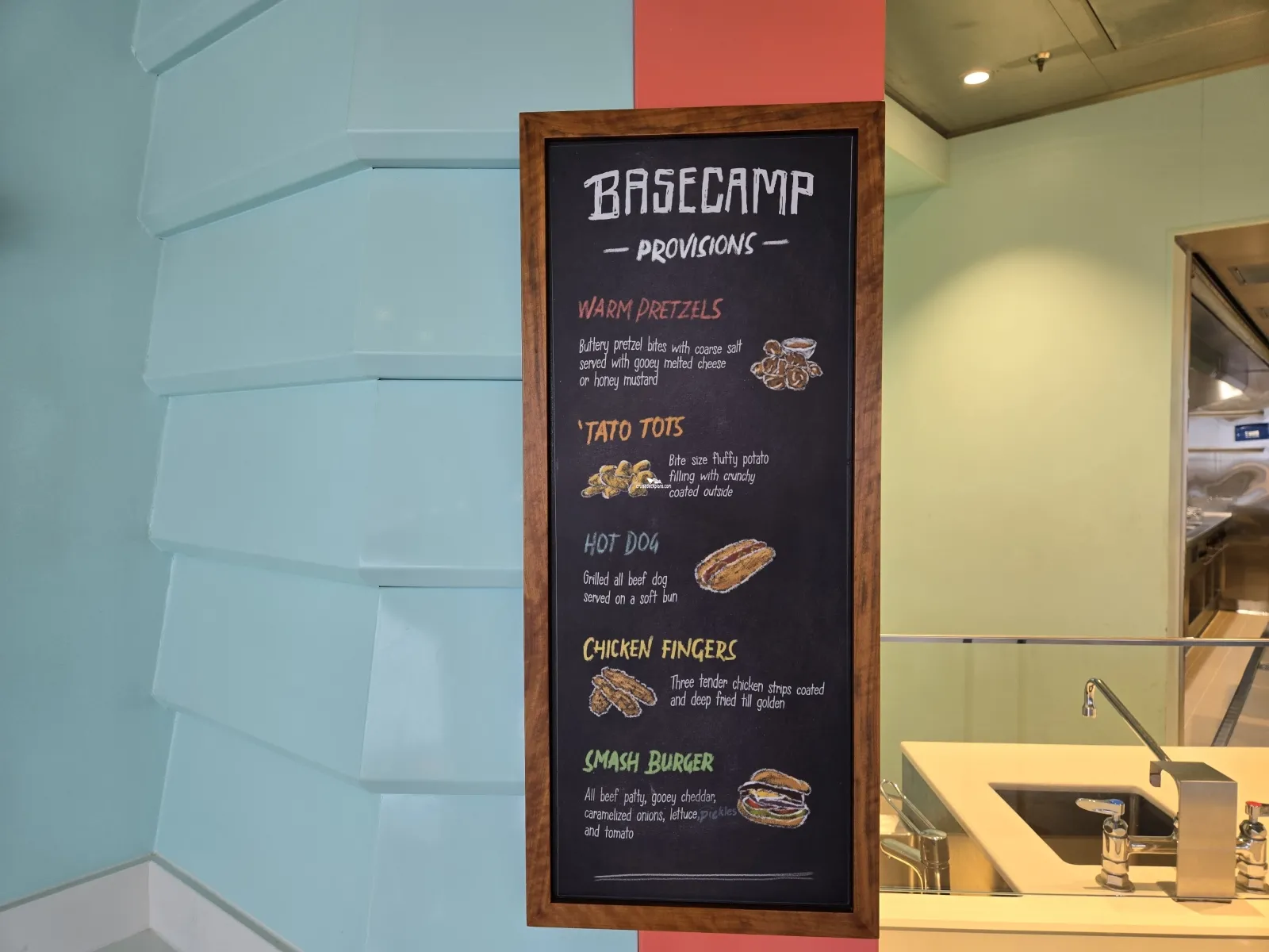 Part skywalk, part ropes course, part thrill ride (zip line), and an all-out test of courage. It is a ropes course-style attraction that goes around the ship's Crown and Anchor logo. Pricing $89 per person.Coastal Kitchen