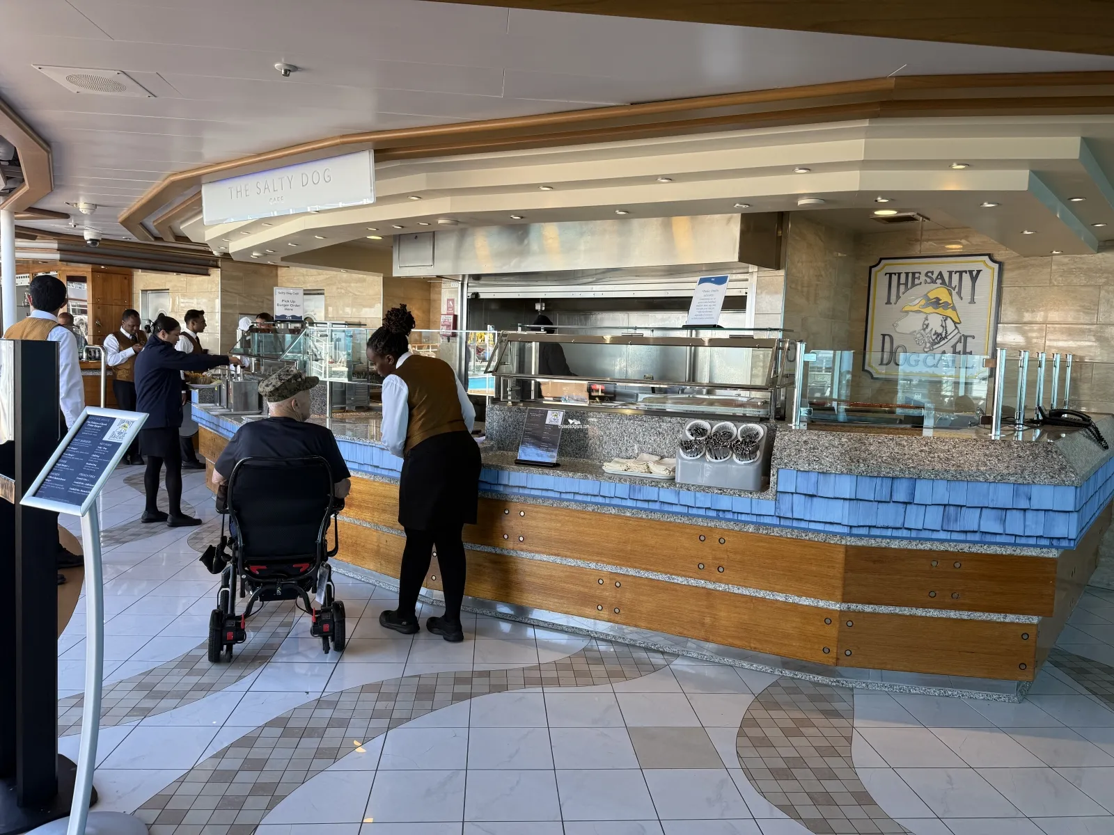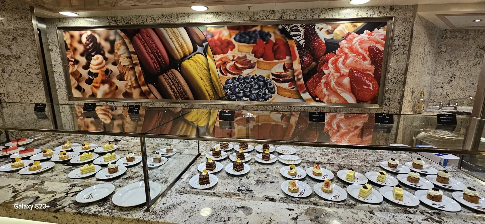 The ship's buffet style dining area with 900 seats. Serves cuisines from around the world including Mediterranean dishes, an Italian pasta speciality counter and a new 'east-meets-west' street food speciality counter.The Bakery inside the World Fresh Marketplace will serve Western, European and Asian pastries.
