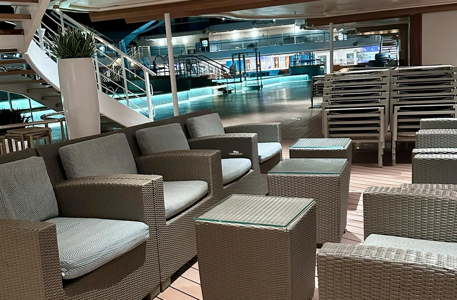 Port side and starboard side glass floor that allows you to view all the way down to the ocean.Wake View Bar and Pool