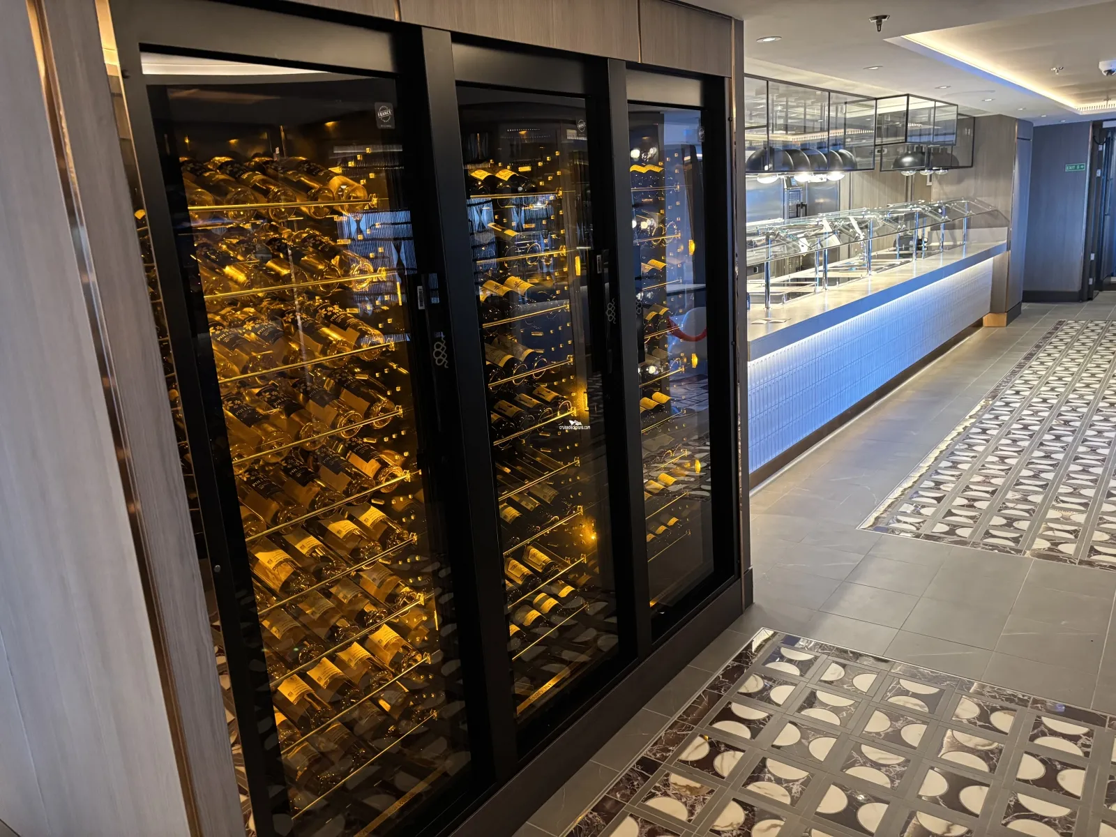 Large floor to ceiling windows featuring lounge and bar. Great view from the top front of the ship.Sukhothai