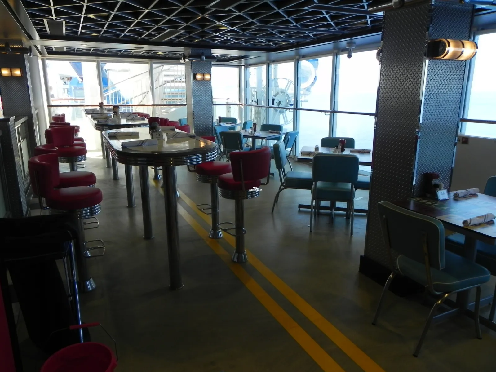 Serving burgers, fried chicken, pot pies and more. Experience a slice of Americana, including classic American cars, with every bite. Pair your delicious diner dishes with American cocktails or beer, including Sam Adams, Budweiser and Whiskey Sours. Enjoy a taste of Americana at sea.Horizon Lounge