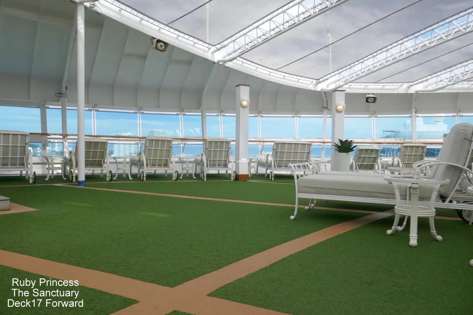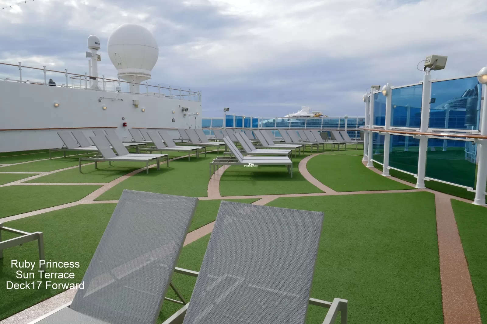 Cruisedeckplans provides full interactive deck plans for the Ruby Princess Sports deck. Just move your mouse over any cabin and a pop up will appear with detail information, including a full description and floor layout, and a link to pictures and/or videos. These are the newest deck plans for Ruby Princess Sports deck plan showing public venues and cabin numbers and locations.