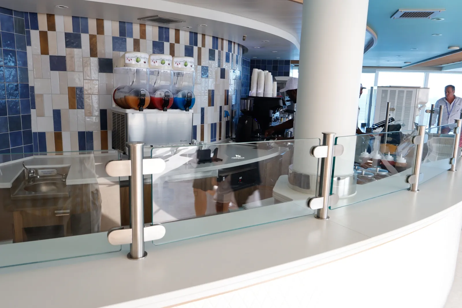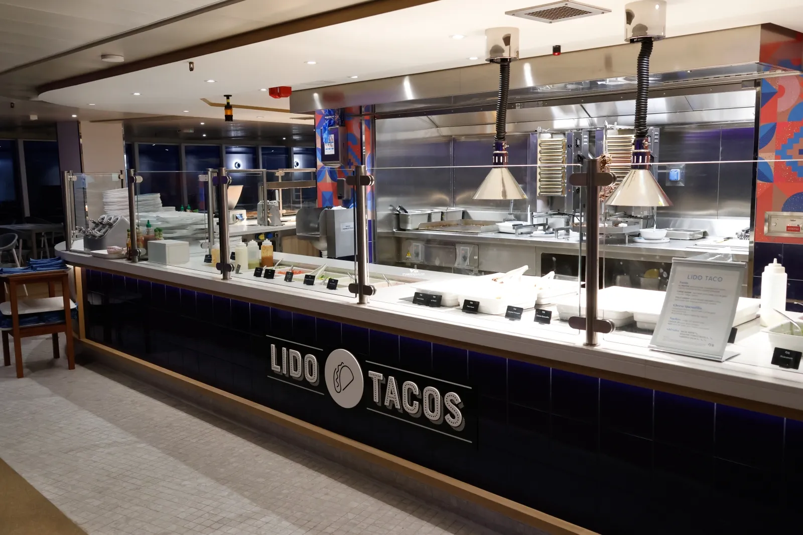Taco & Shawarma bar serving seafood or chicken tacos, bean vegetarian or pulled pork burritos, and Cheese or California nachos. Also available is lamb & turkey shawarma.Sea View Terrace