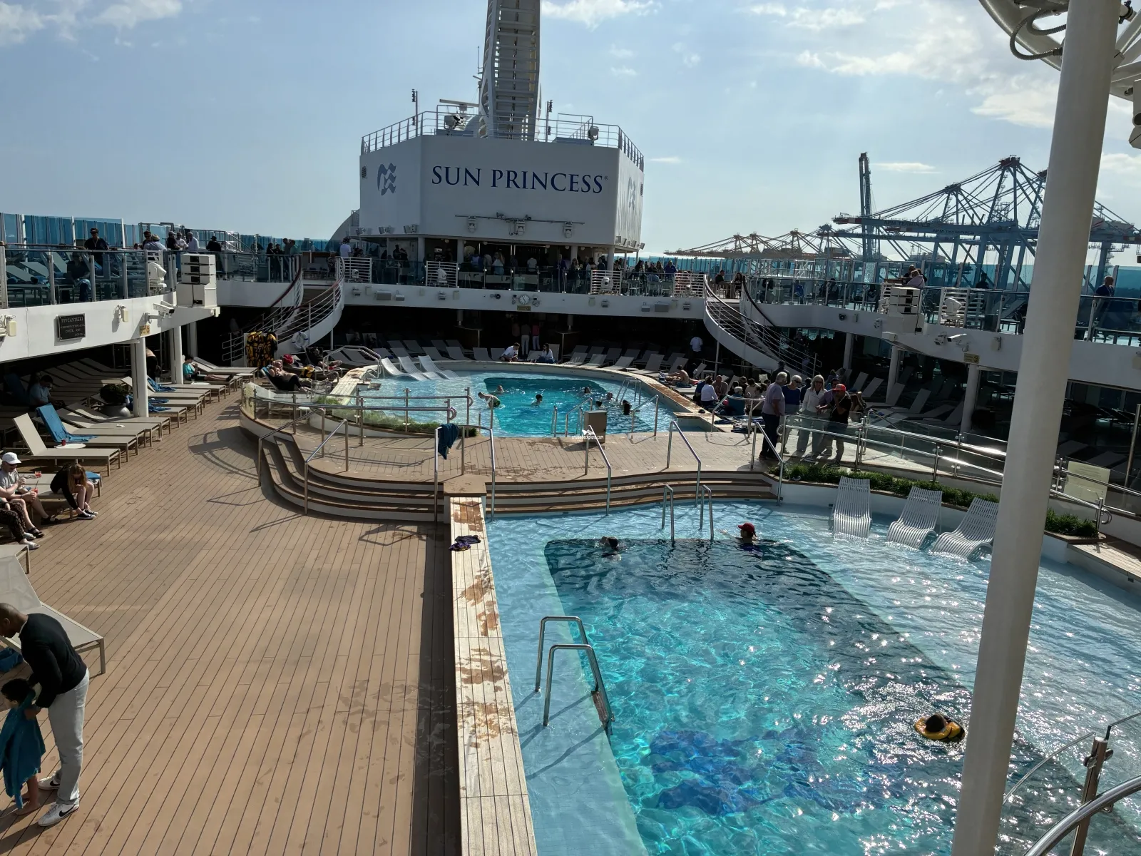Outdoor loungers and great views from the top front of the ship. There is a bar and pool nearby. Note: Princess had placed padded loungers in this area but relocated those to the Sanctuary.The Mix