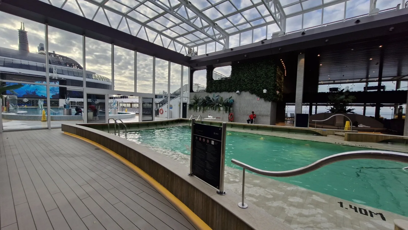 Main pool area with vast sundeck and amphitheatre.Botanic Garden Pool
