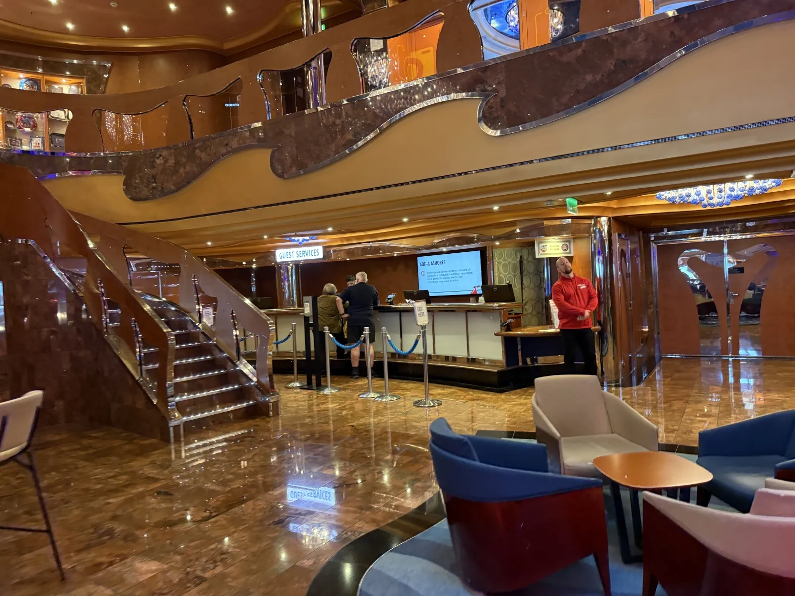 Shore Excursion Desk: Provides information and purchase of shore excursions and golf excursions ($). Provides information on ports-of-call. Provides information on our ships and itineraries and how to get the best deal on a future cruise (Future Cruise Vacation program $)Guest Services