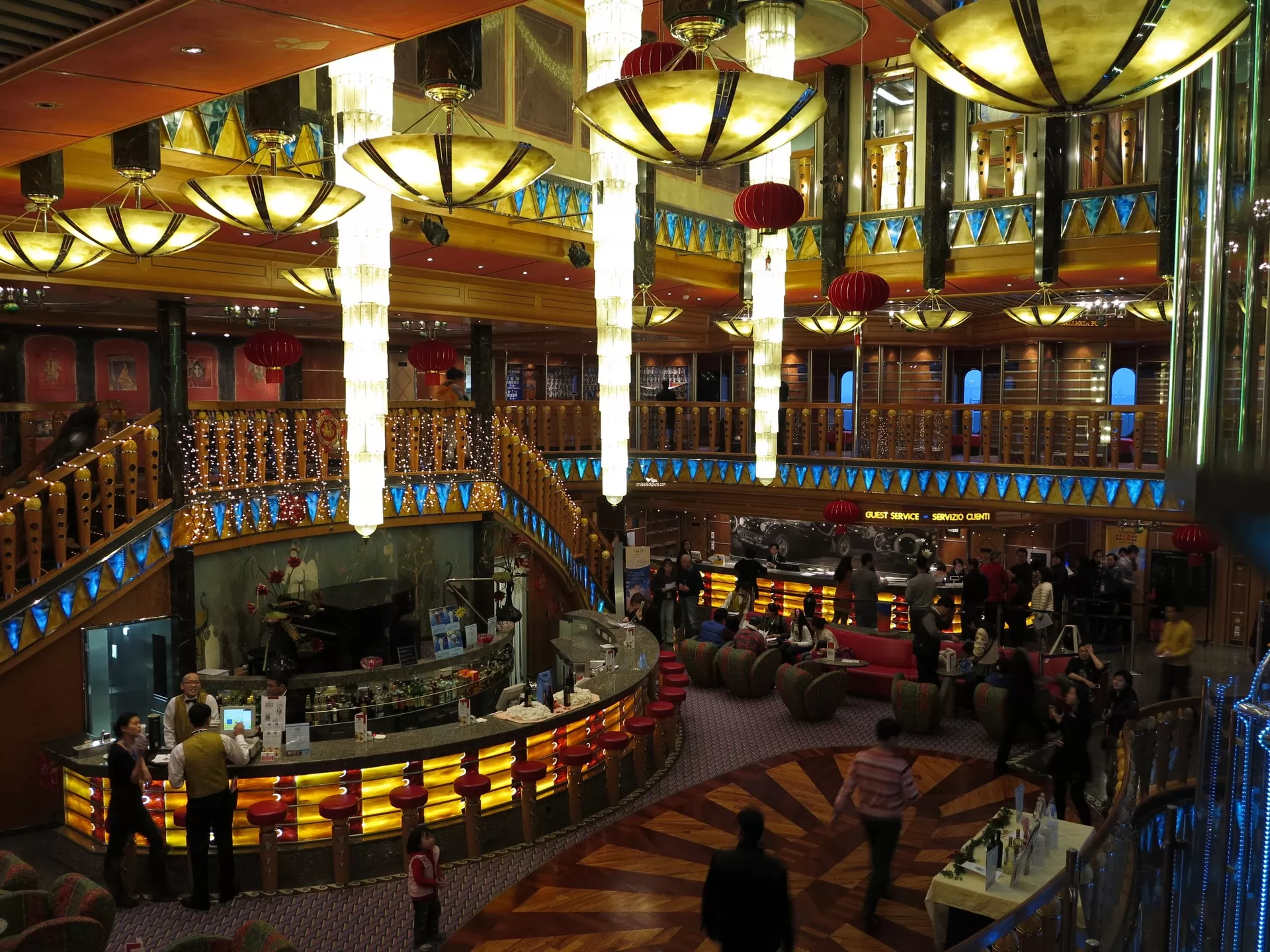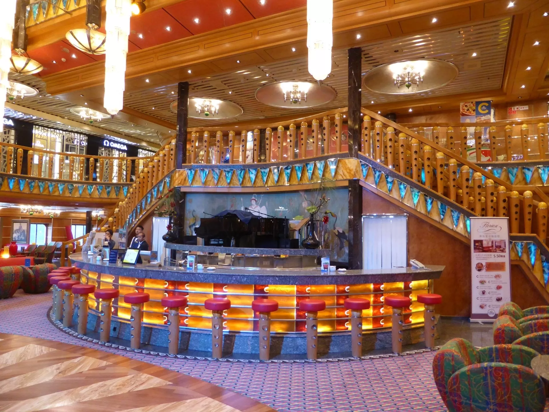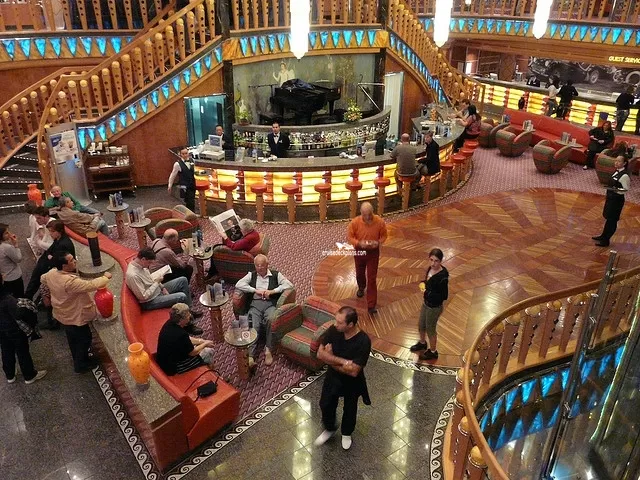 Ships atrium. On first level is bar and lounge area.Casino Fortuna
