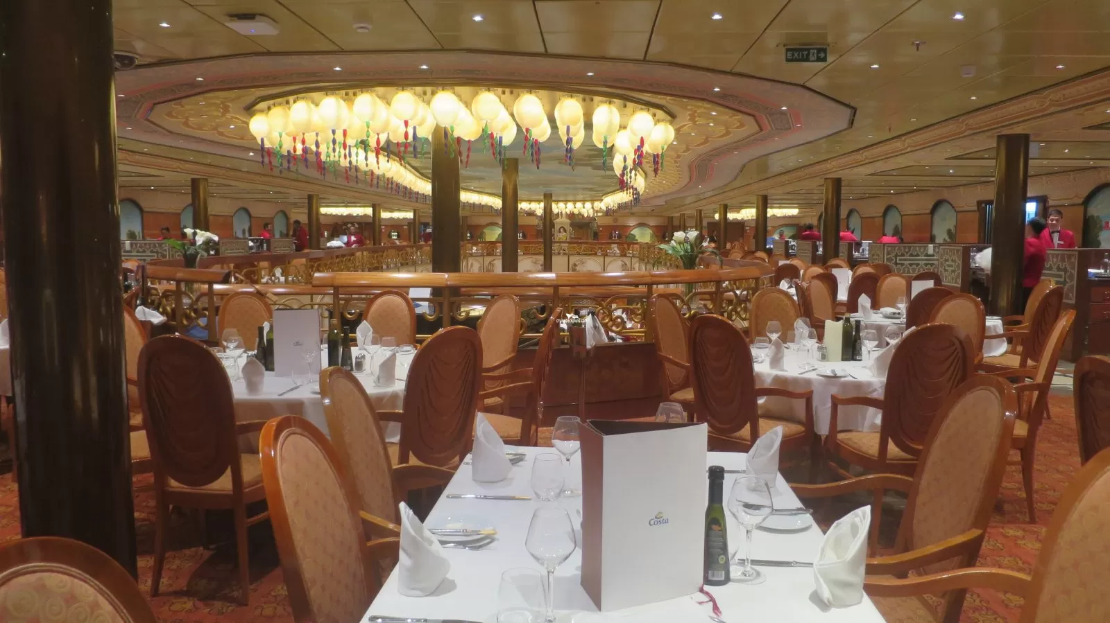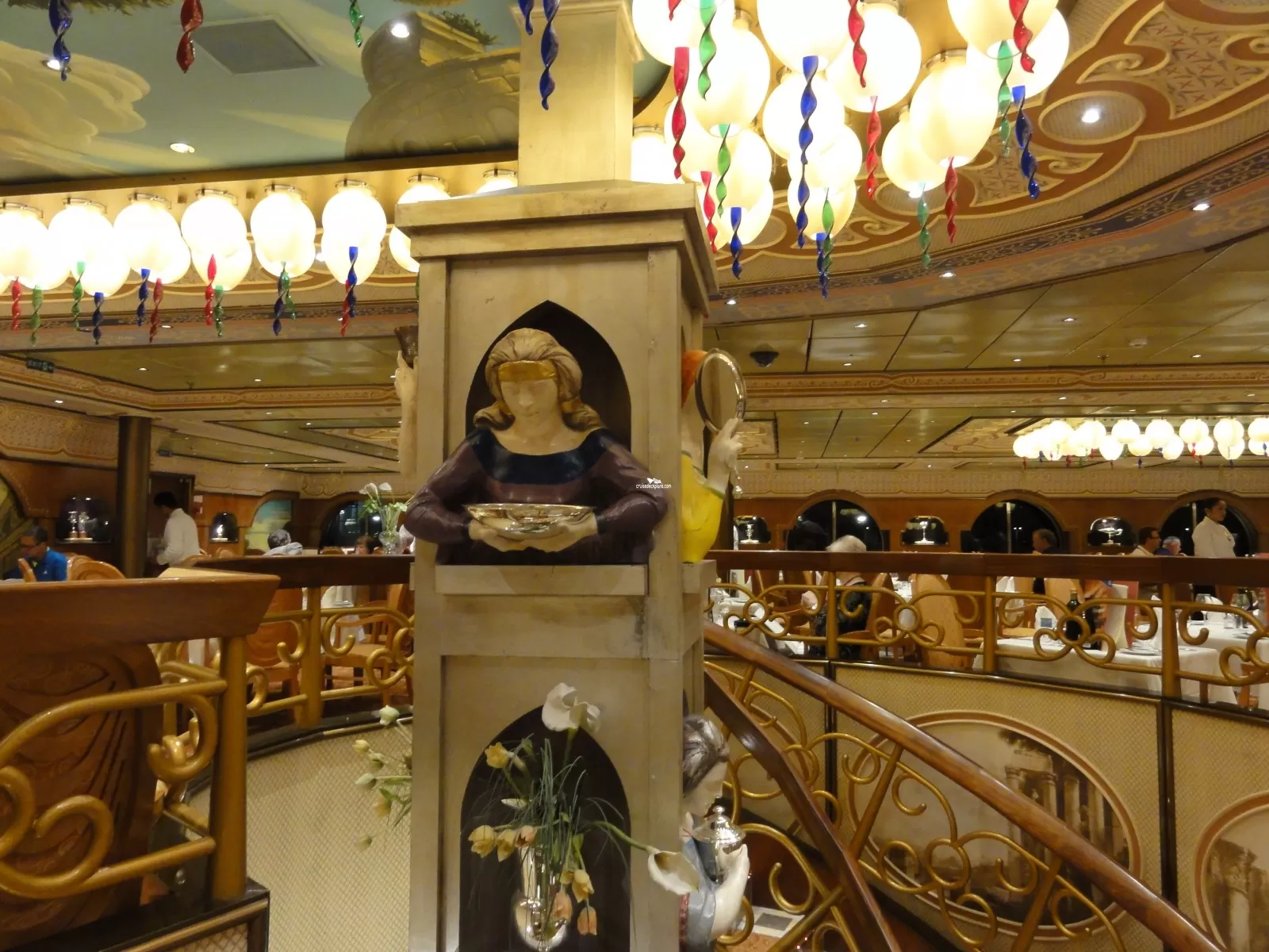 The ship's three tiered main theater with entertainment on offer ranging from musical and ballet productions to laser light shows and circus acts.Ristorante Degli Argentieri