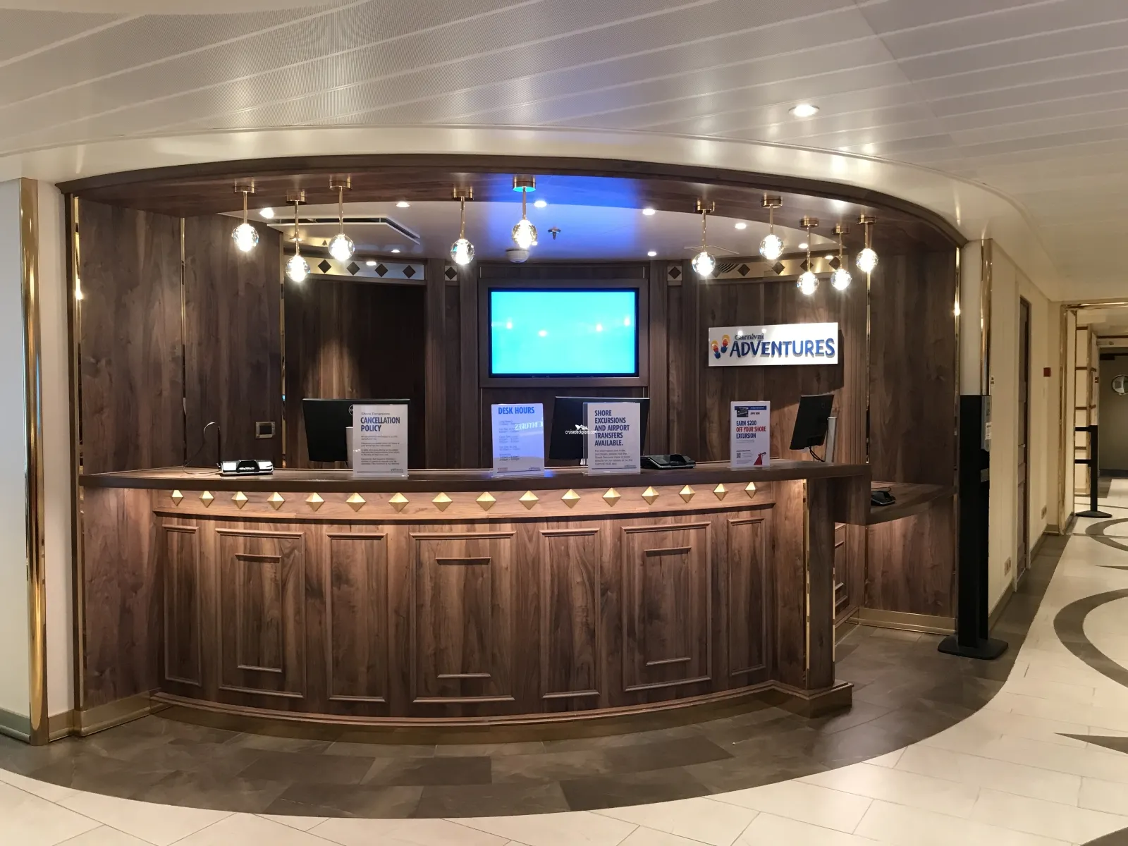 Ship sponsored shore excursion desk. Provide information and purchase of shore excursions and golf excursionsGuest Services