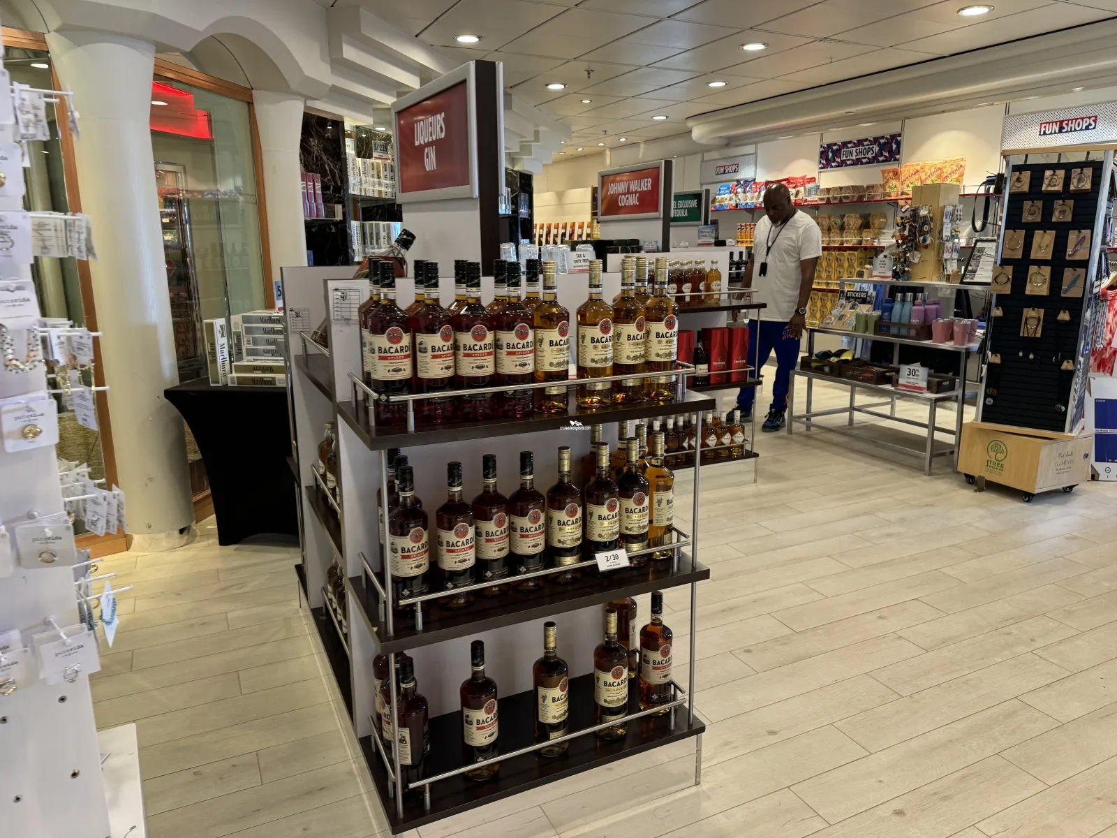 They are a selection of shops and boutiques selling duty free items including jewelery, clothes, liquor and souvenirs.Cherry on Top