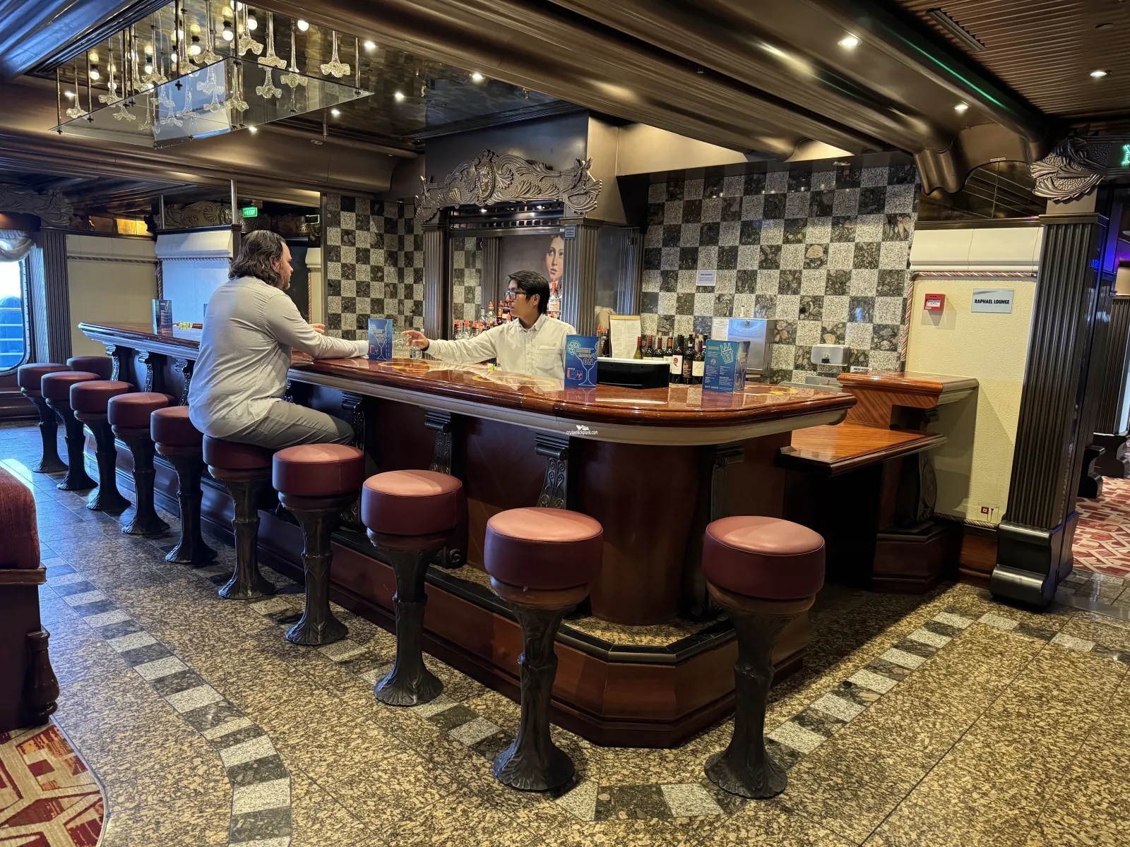 Displays photos taken by the ship's official photographer on board the ships and at ports of call.Raphael Lounge