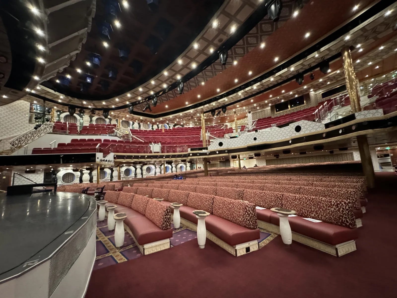 The ship's three tiered main show lounge which can seat 1167 guests. The ship's main stage productions take place here featuring dancers, musicians and performers.The Warehouse