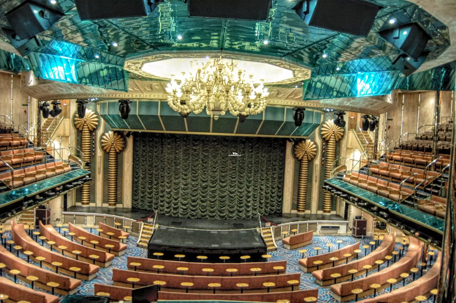 The ships three tiered main show lounge with seating for 1500 and playing host to the ships major stage productions. Bingo, talks and seminars, audience participation games, dance classes are also held here. Beverage service is provided during some of the events.Pacific Dining Room