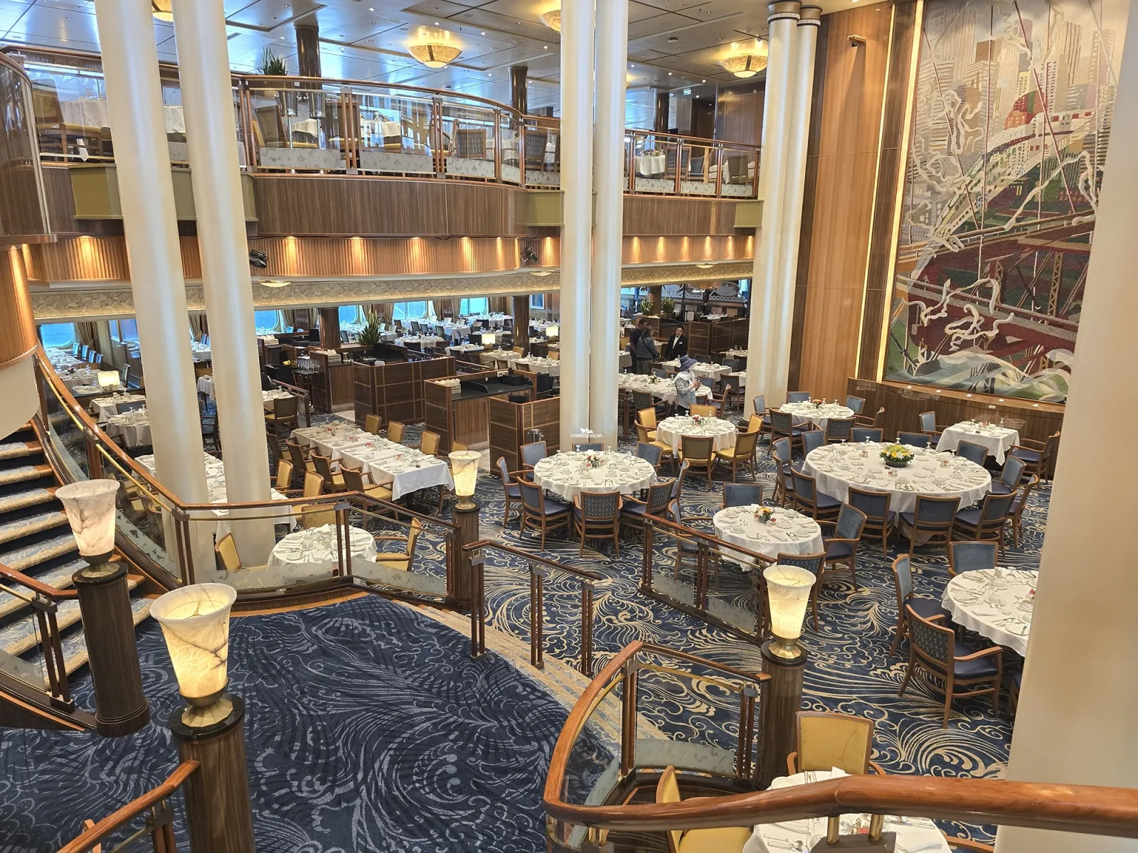 Named for her shipyard hull number, the two level disco is designed in a contemporary style and features both a DJ and a live band. It is the area open latest on the ship and hosts a number of memorable dancing themed nights from the 60s, 70s & 80s.Britannia Restaurant