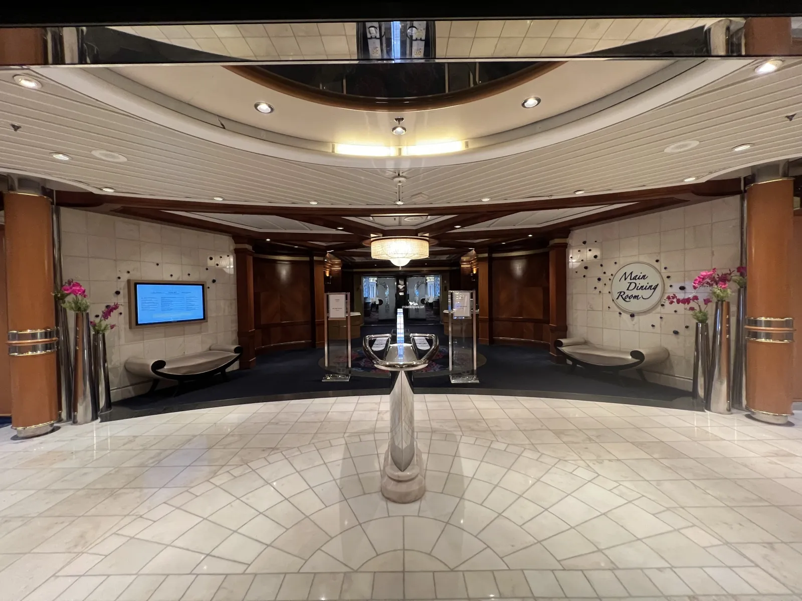 All portraits taken by the ships onboard photographers are displayed here for guests to view and purchase. The area features an interactive photo kiosk which utilises advanced facial recognition technology to quickly display guests' photos.Main Dining Room
