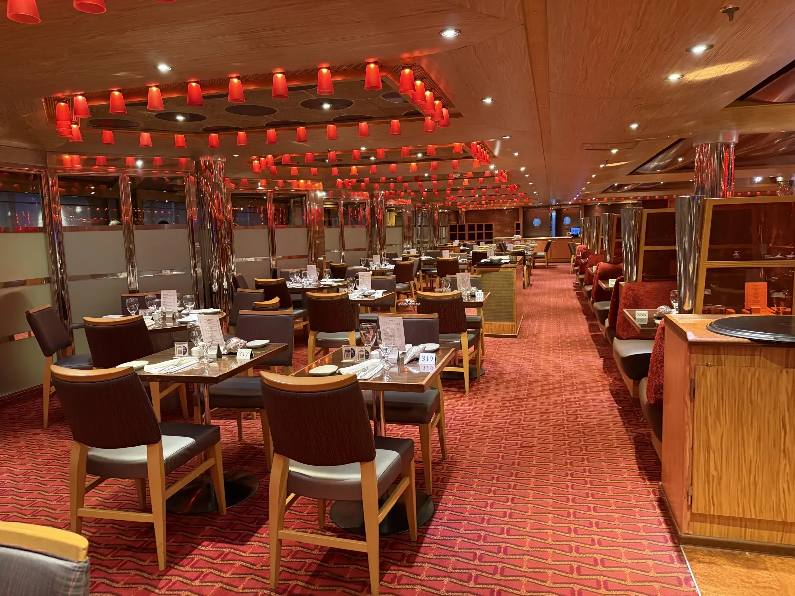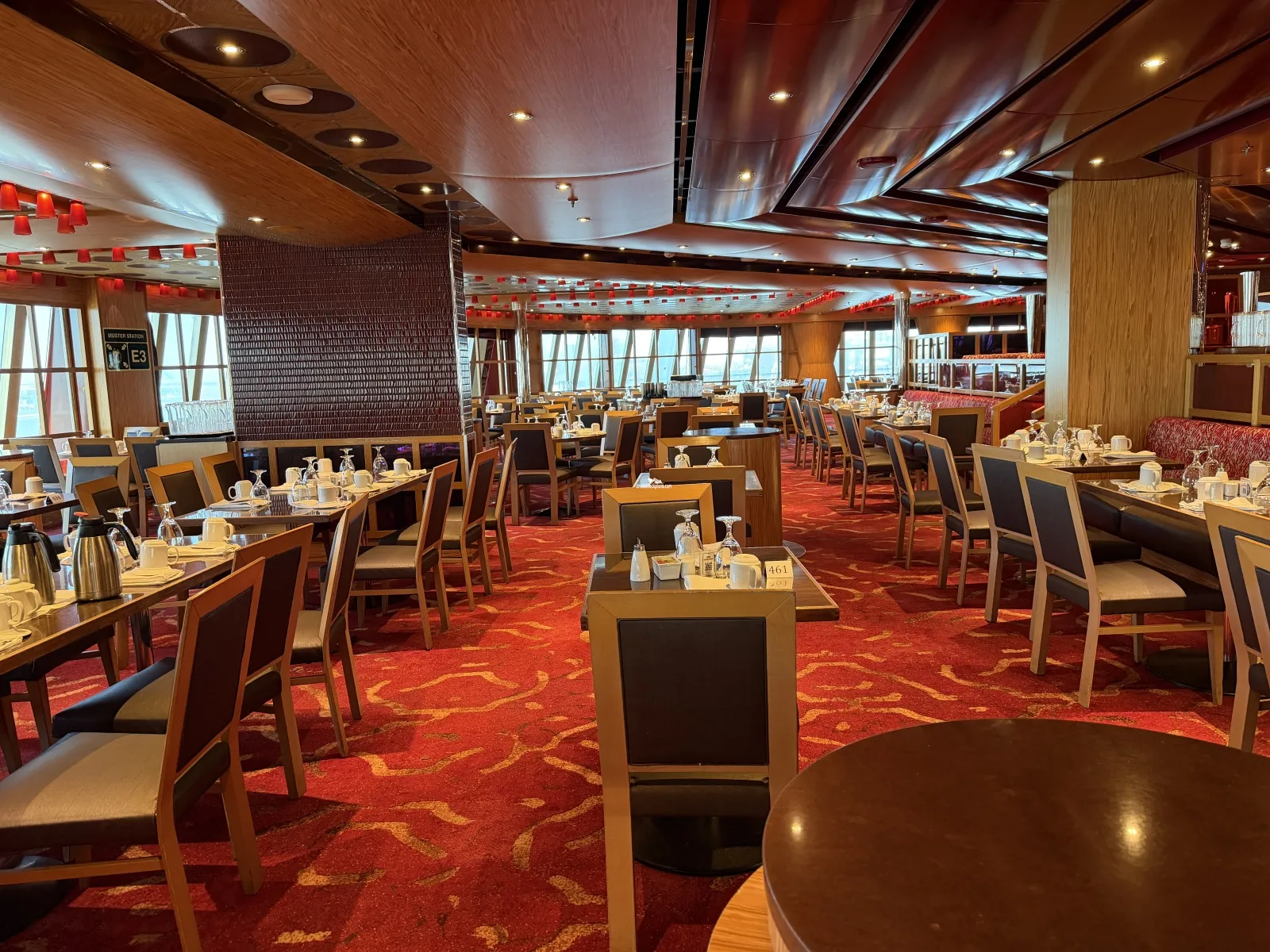 The smaller of the two main dining rooms, with seating for 744.Club O2