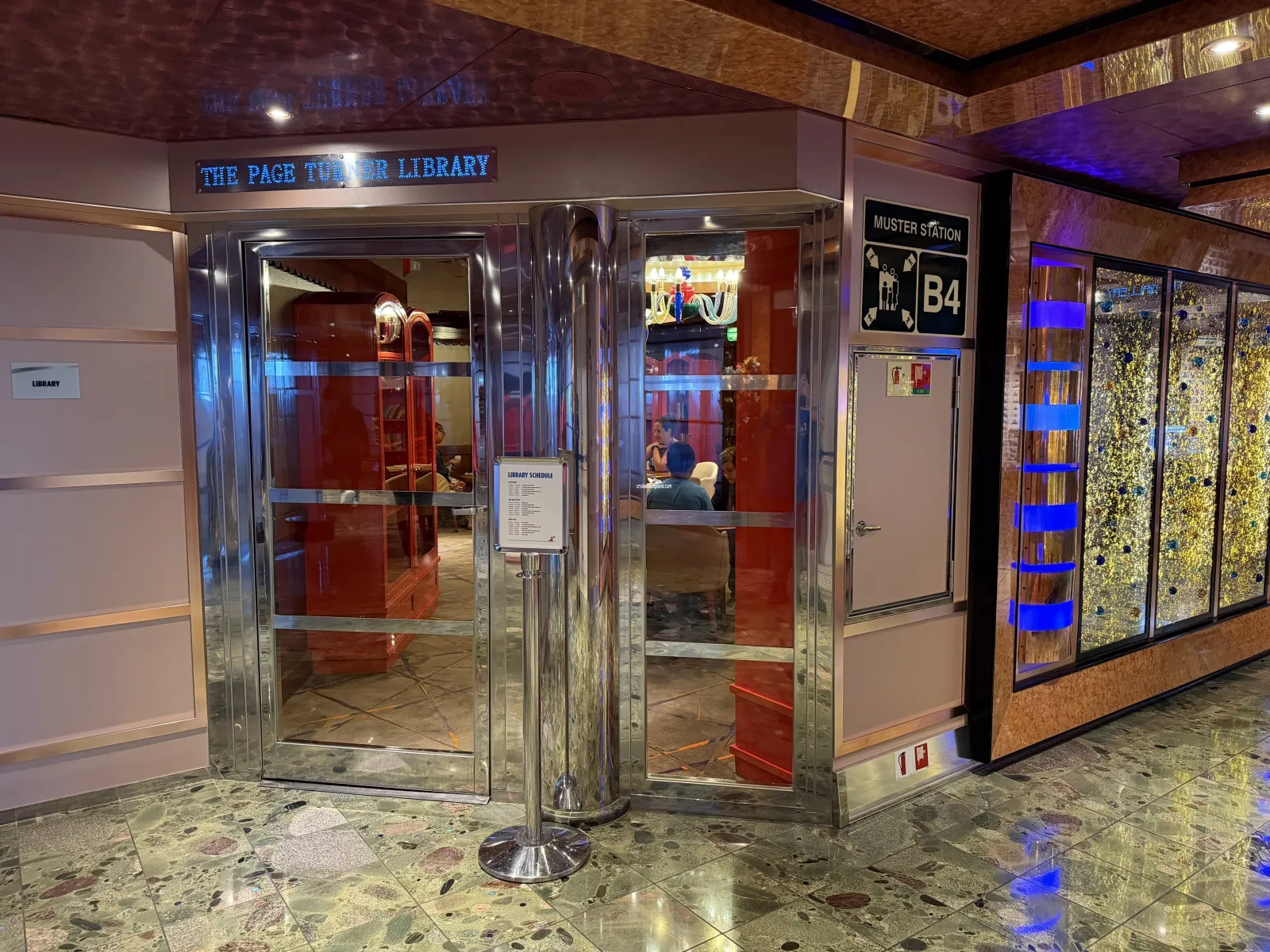 Main show lounge that seats 1349 people. Three levels high. Also venue for bingo, seminars, audience participation games, dance classes, midnight shows. Many functions will have beverage service.The Page Turner Library