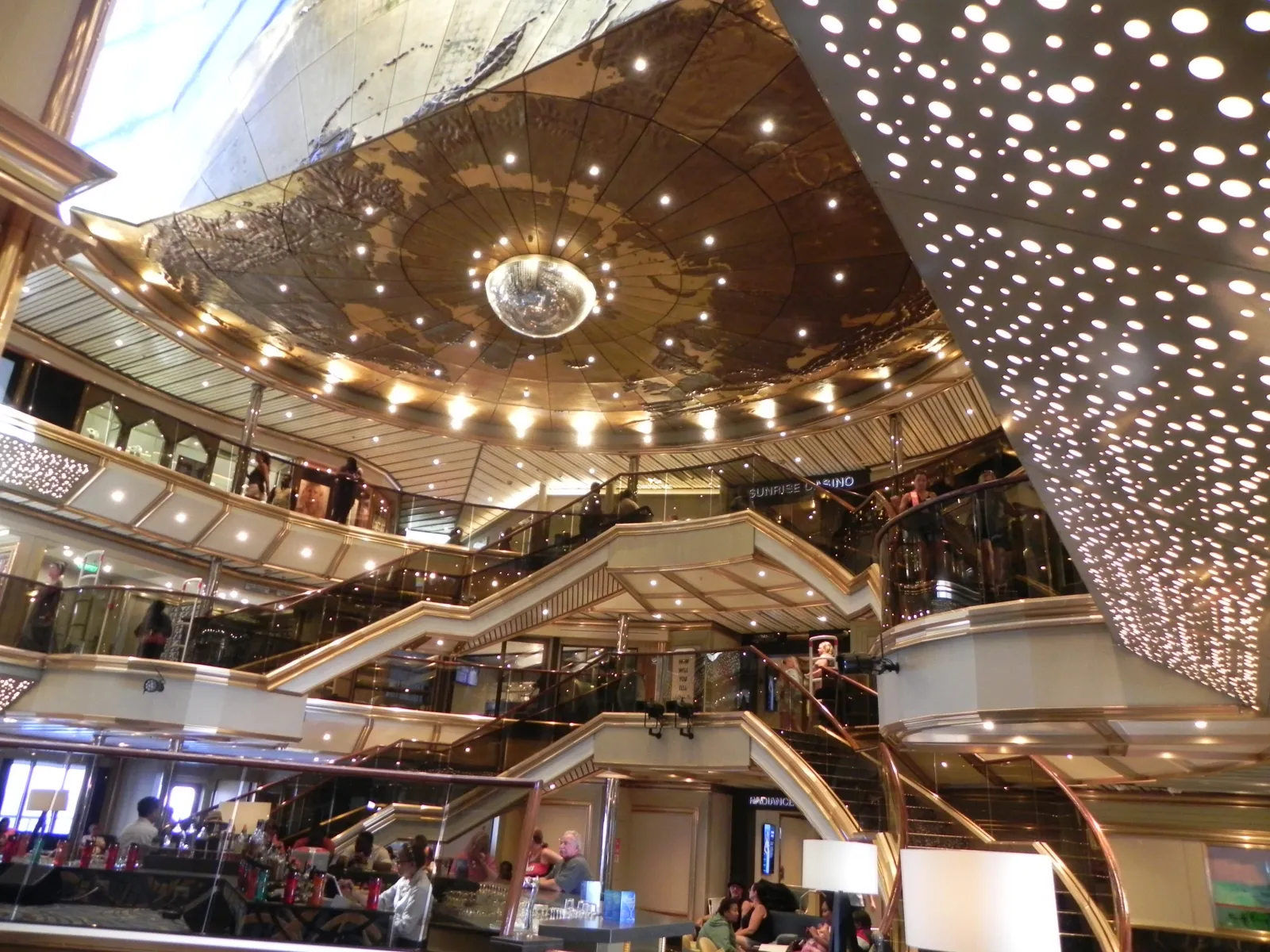 Main ship atrium. On first level is guest services and shore excursion desk.JavaBlue Cafe