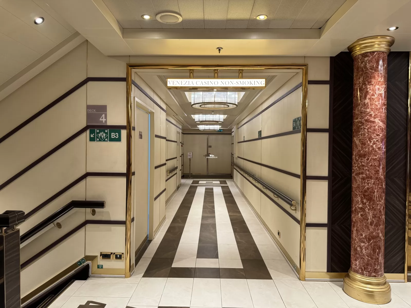 Located deck 4 midship. Separate casino with slots and tables for non-smokers.Cabin Check Tool