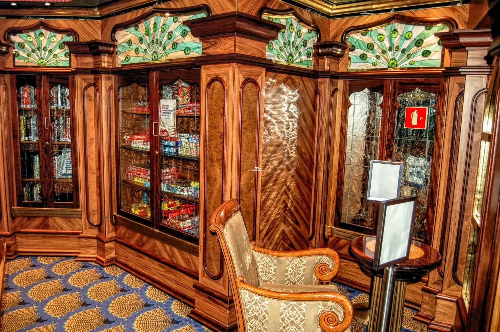 One of the ships two formal dining rooms with seating for 702. Offers sit-down waiter service. Open nightly for dinner at 5:45. Open seating is on deck 3 and assigned dining is on deck 4.Ionian Cigar Room