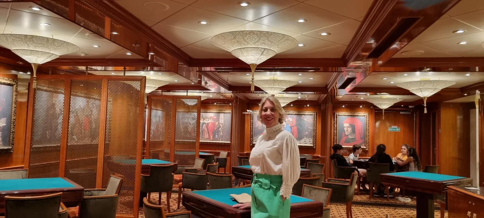 Casino Dea Bendata located mid ship deck 4. Includes special VIP room.Card Room