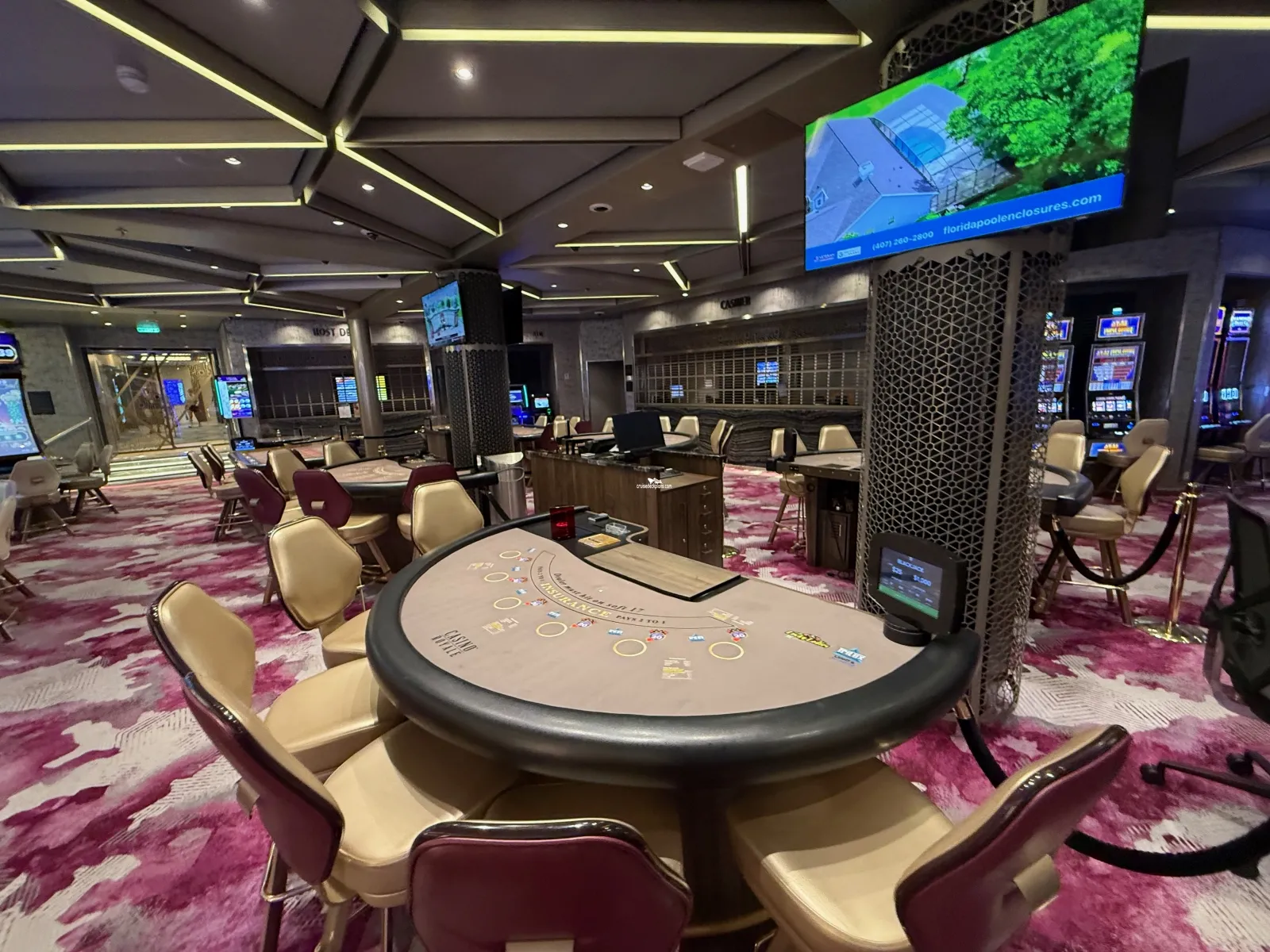 Our glittering casino features electronic slot machines, video poker, blackjack, craps, roulette and Caribbean stud poker.Main Dining Room