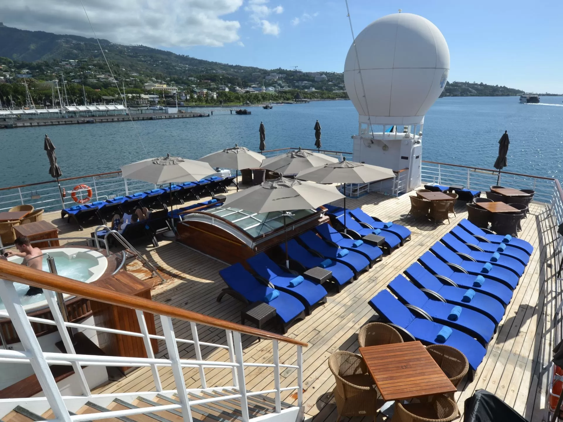 This tool will help you see what is on the deck above and the deck below your stateroom. Don't be surprised by loud chair scraping noise above you.