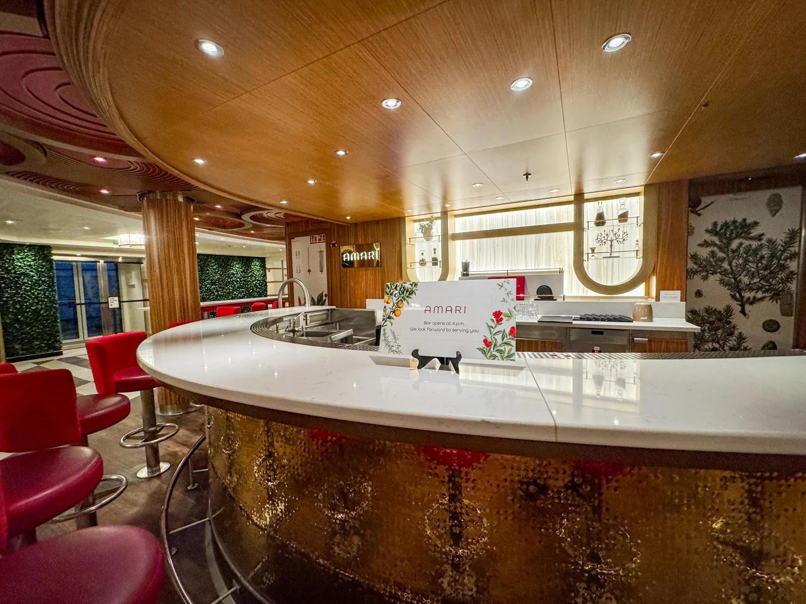 Exclusive use for guests occupying the Terrazza Carnevale staterooms A terraced deck featuring comfortable sofas, private alcoves and Hot Tub Spas (2) At night, a chic rooftop bar under the stars with live music. Beverage Service ($)Amari Bar