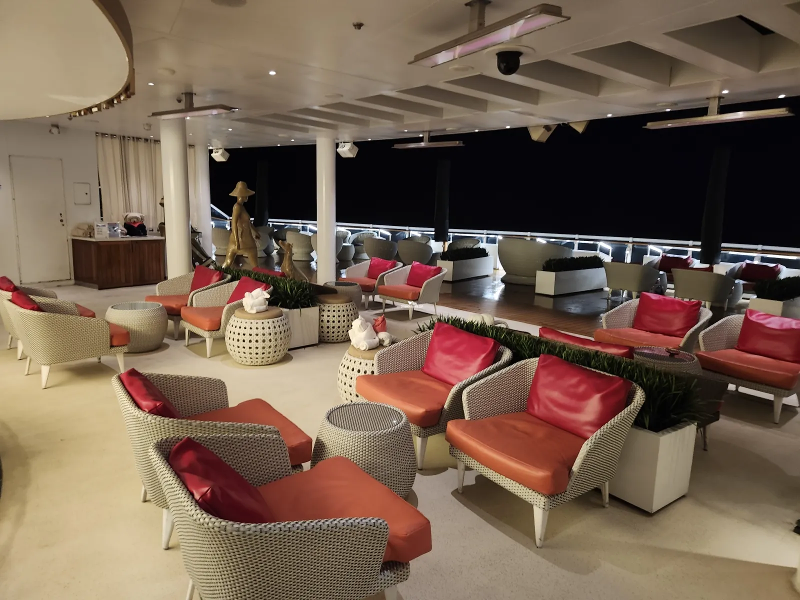 Outside promenade deck that wraps around the ship.Bonsai Teppanyaki