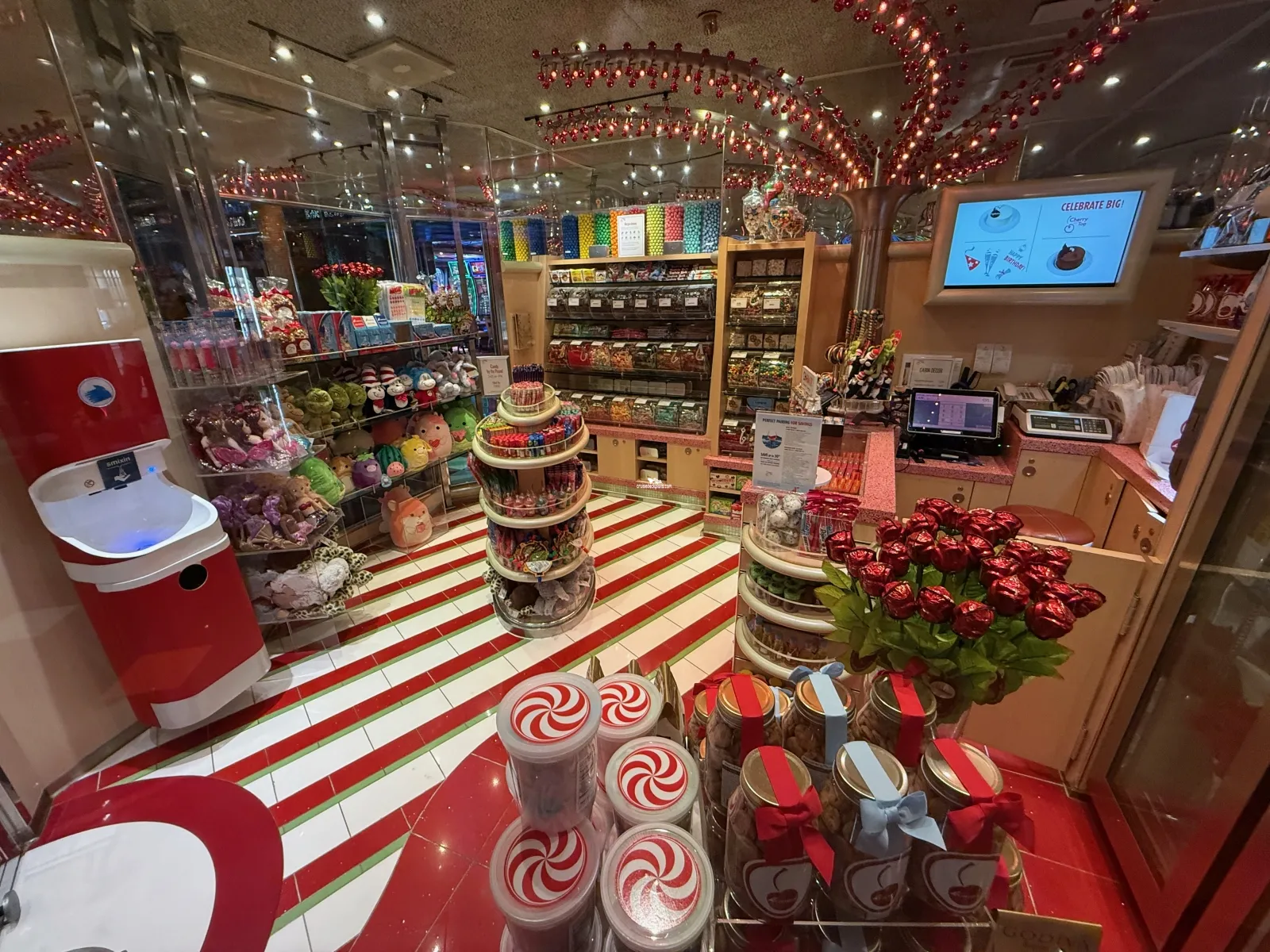 Well stocked candy and more store with confectionary favourites, cupcakes, chocolate bars, branded Cherry On Top gear, tuxedo rentals, and gifts for special occasions such as flowers and wine. Includes a premium ice cream counter with goodies for mixing and topping.Heros Tribute Lounge