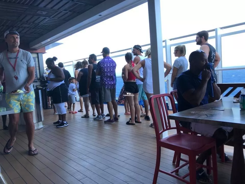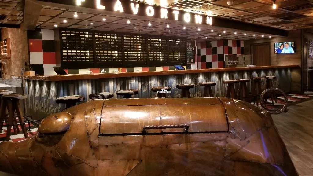 Hours: 12:00pm-2:30pm on sea days. Complimentary. Guys Pig & Anchor Bar-b-que Smokehouse. Includes menu items such as Championship Pork Butt, Smoked Andouille Sausage, and Guys famous Blue Ribbon Chicken; as well as sides like Mac Daddy Mac 'n Cheese and Old Skool Potato Salad. Top it all off with Guys line of signature barbecue sauces.Fun Hub
