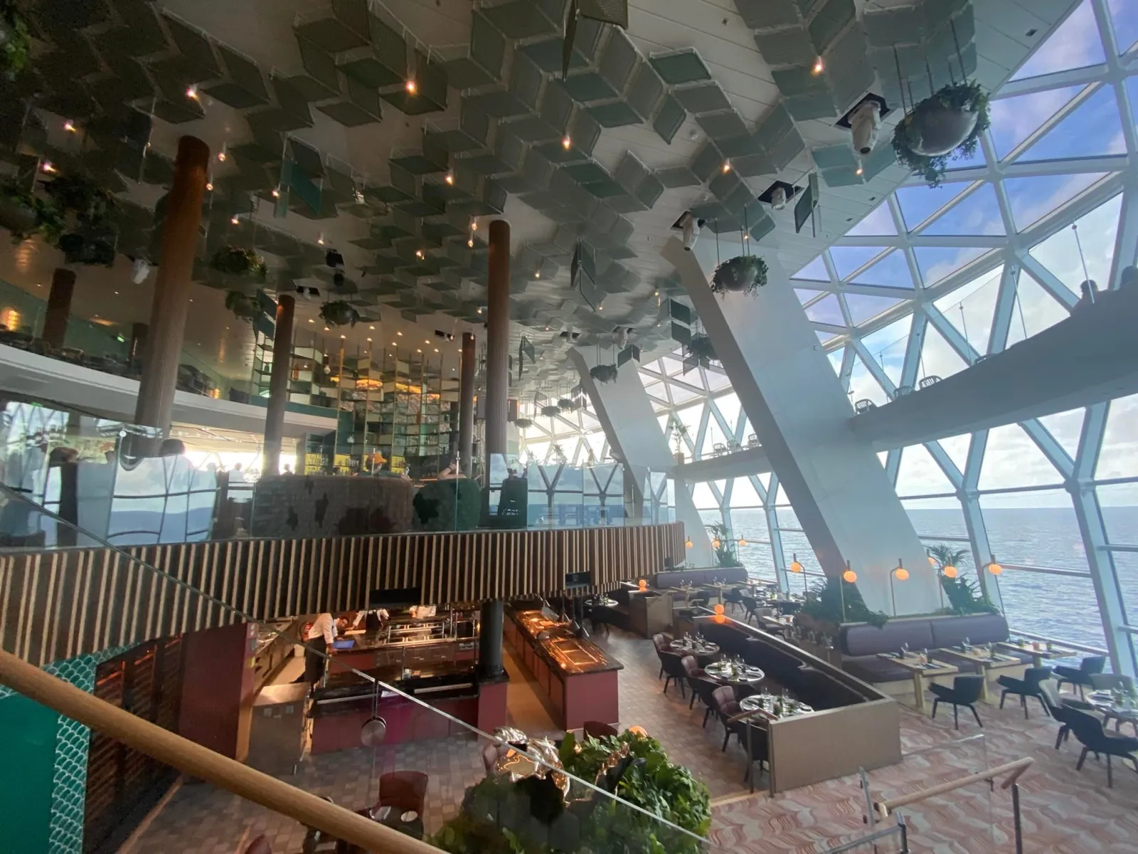 A la Carte pricing dining open for lunch and dinner and serves seafood and includes a raw bar. Seats 79. Features oysters, crab and lobsters. When the Magic Carpet is positioned on deck 5 this will also feature more casual offerings like Shrimp Salad, Lobster Roll, Sushi and Sashimi.Oculus Theater
