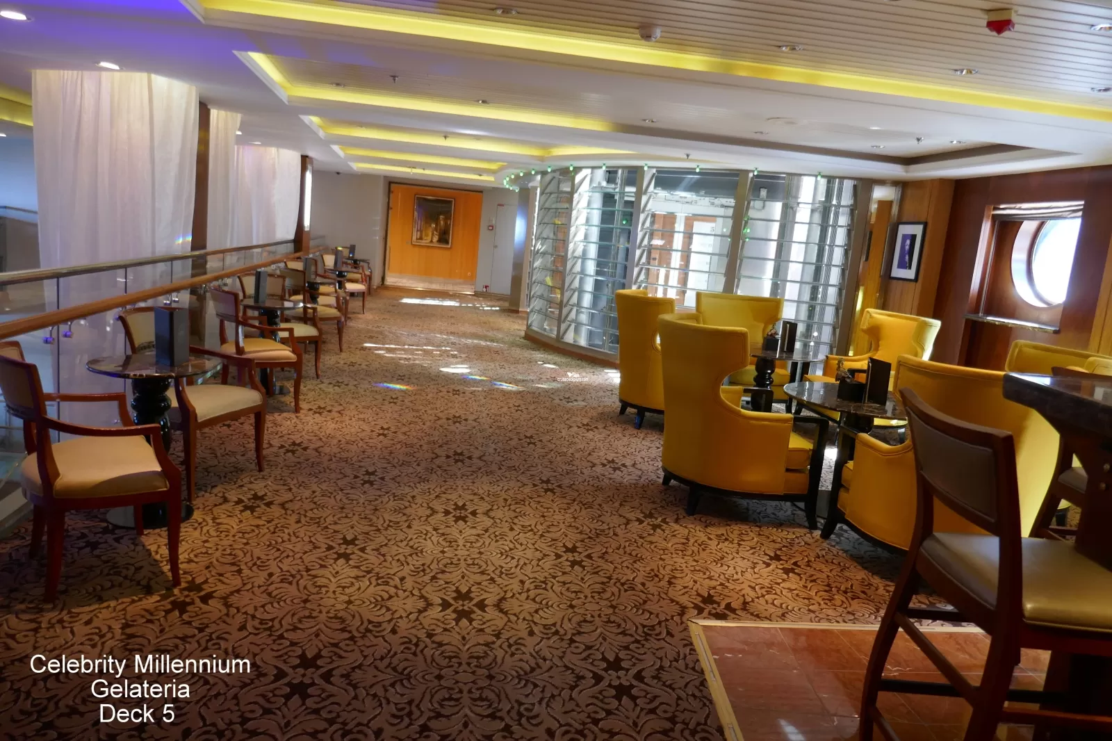 The ship's coffee shop with its comfortable furniture and warm atmosphere making it the ideal place to relax during the day or call in during the evening for a cocktail and dessert.Gelateria