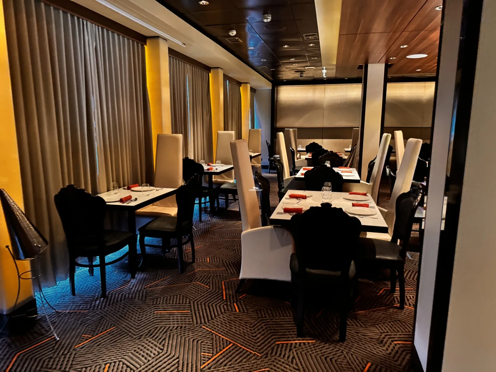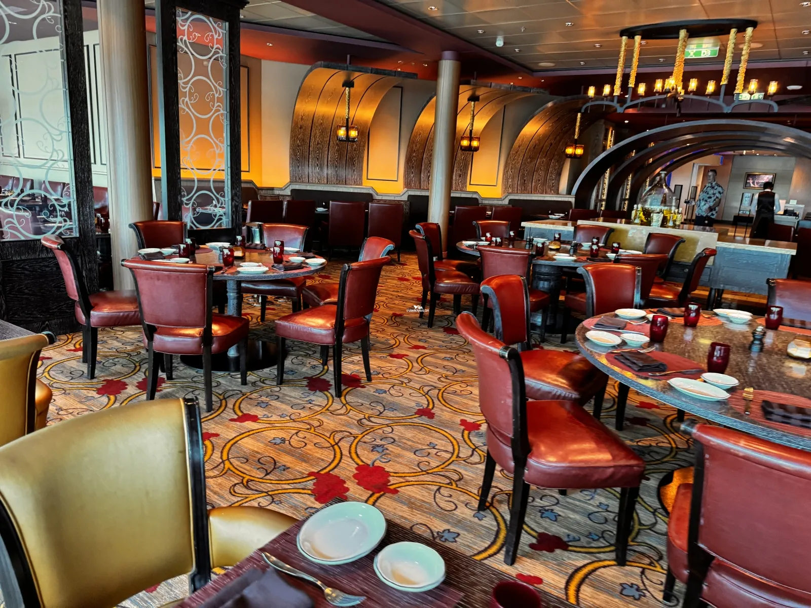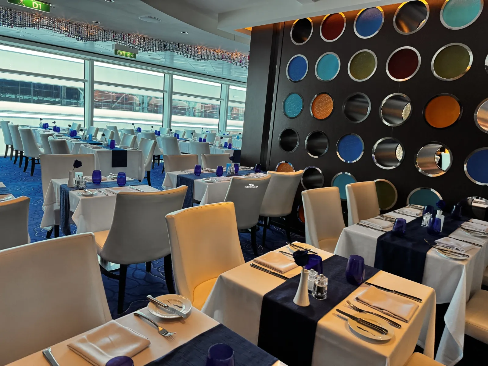 Combines traditional Italian cuisine with American steakhouse dishes, with scenic views over the ship's wake and table-side service. Seats 144 people.Blu