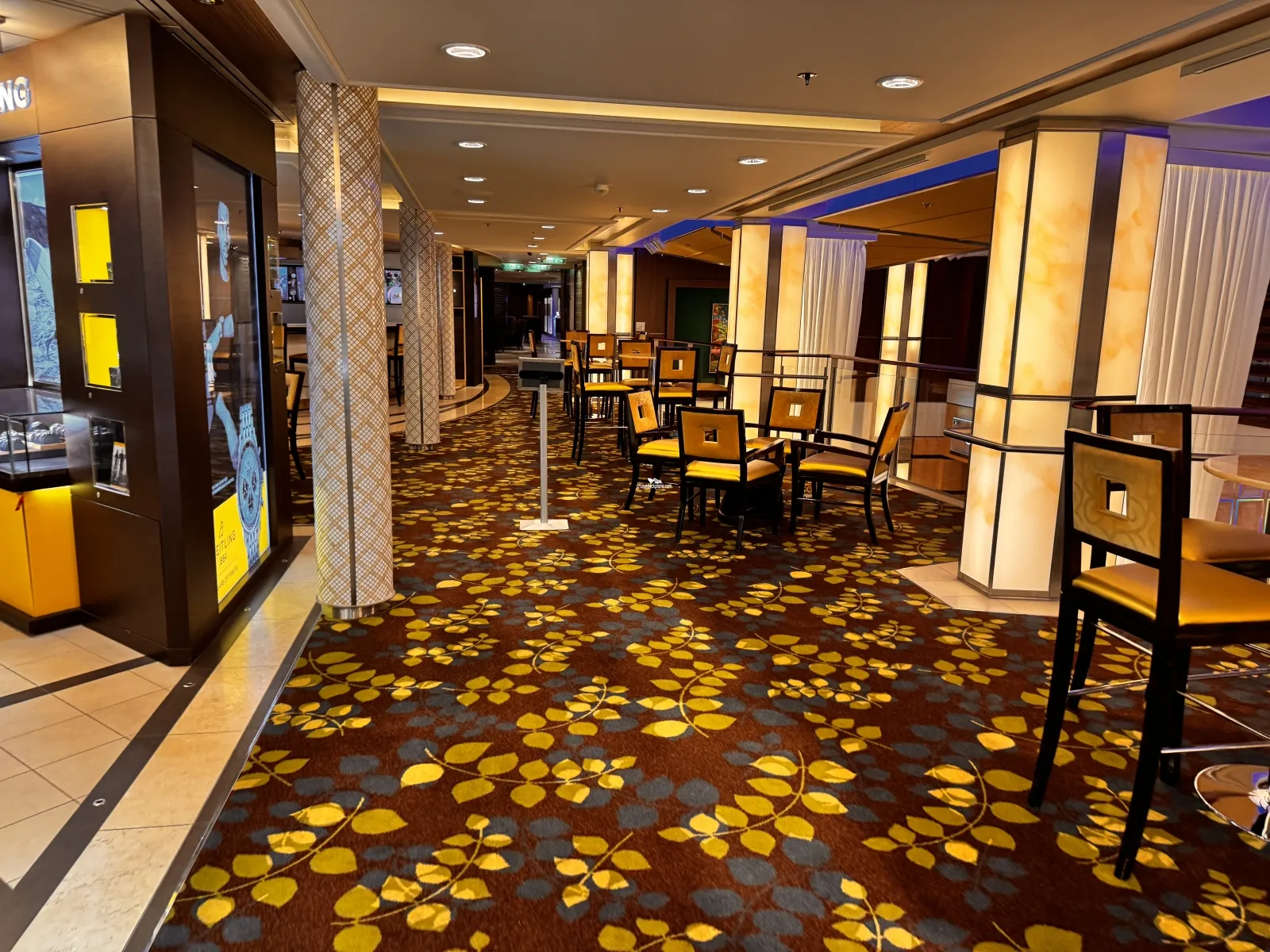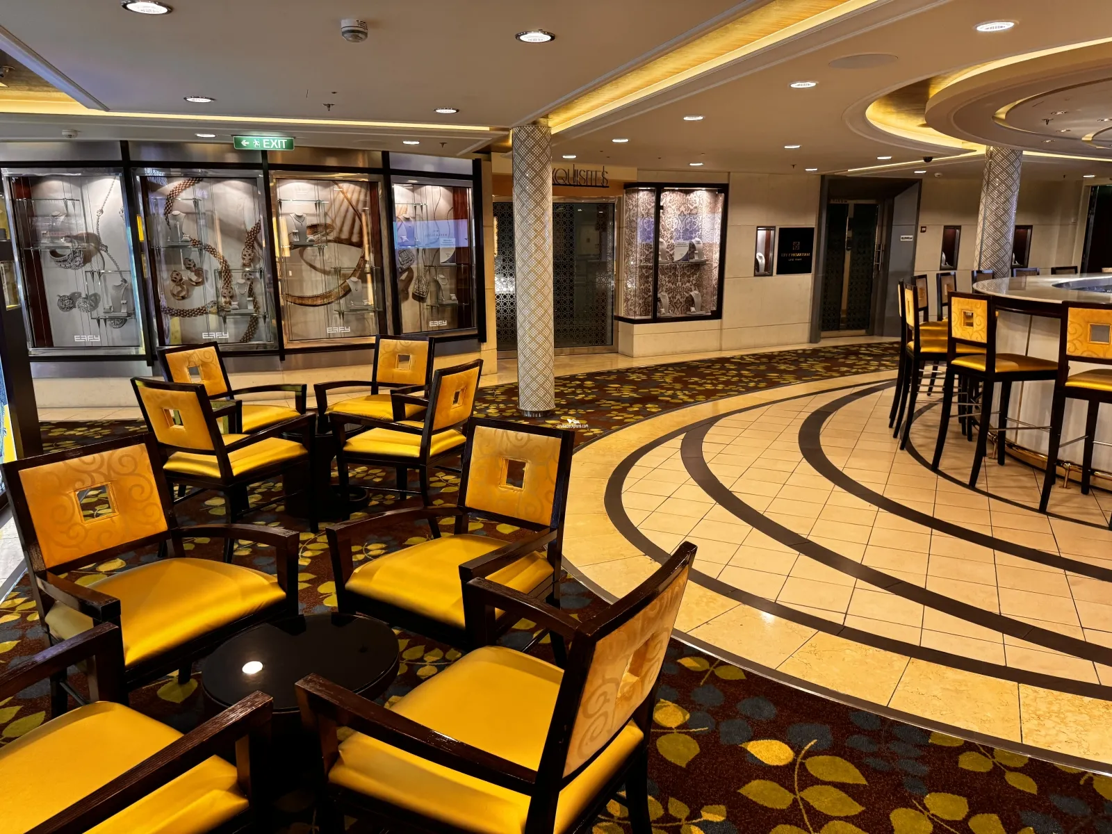 The gateway to the ship's four specialty restaurants with its "dressed for dinner" gathering, is the ideal place for a drink before or after dining featuring live musical entertainment. SeatsMurano