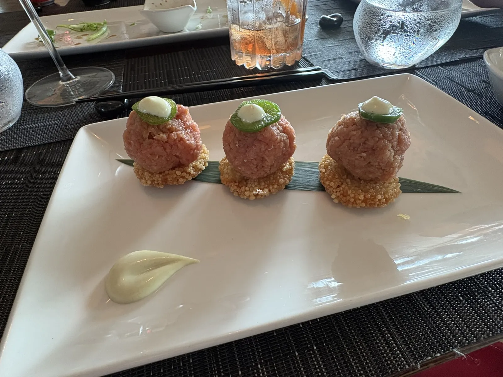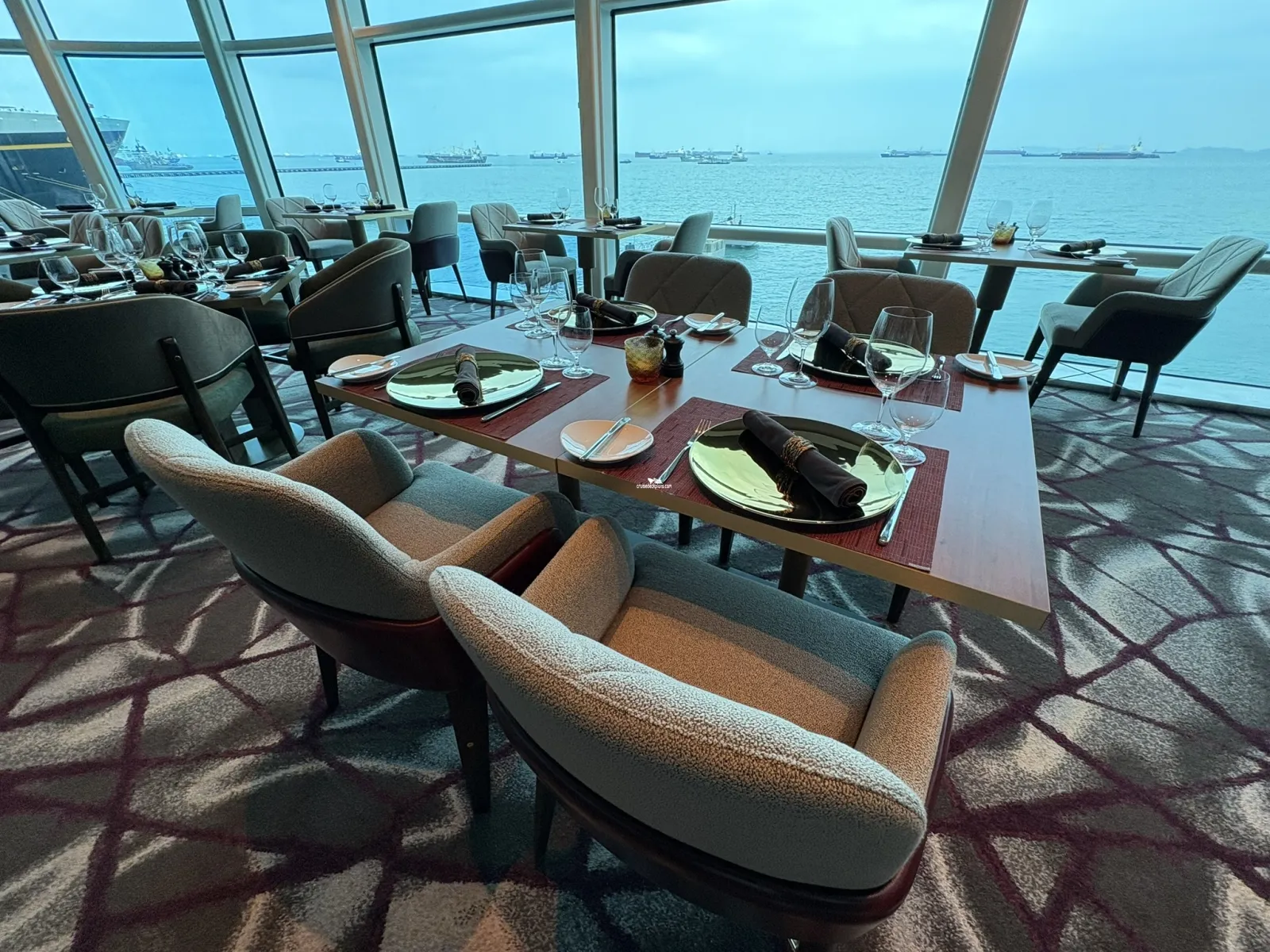 Offering Mediterranean spa style cuisine, popular dishes incorporate clean, crisp, light flavors. 32 seats for AquaClass passengers only.Murano