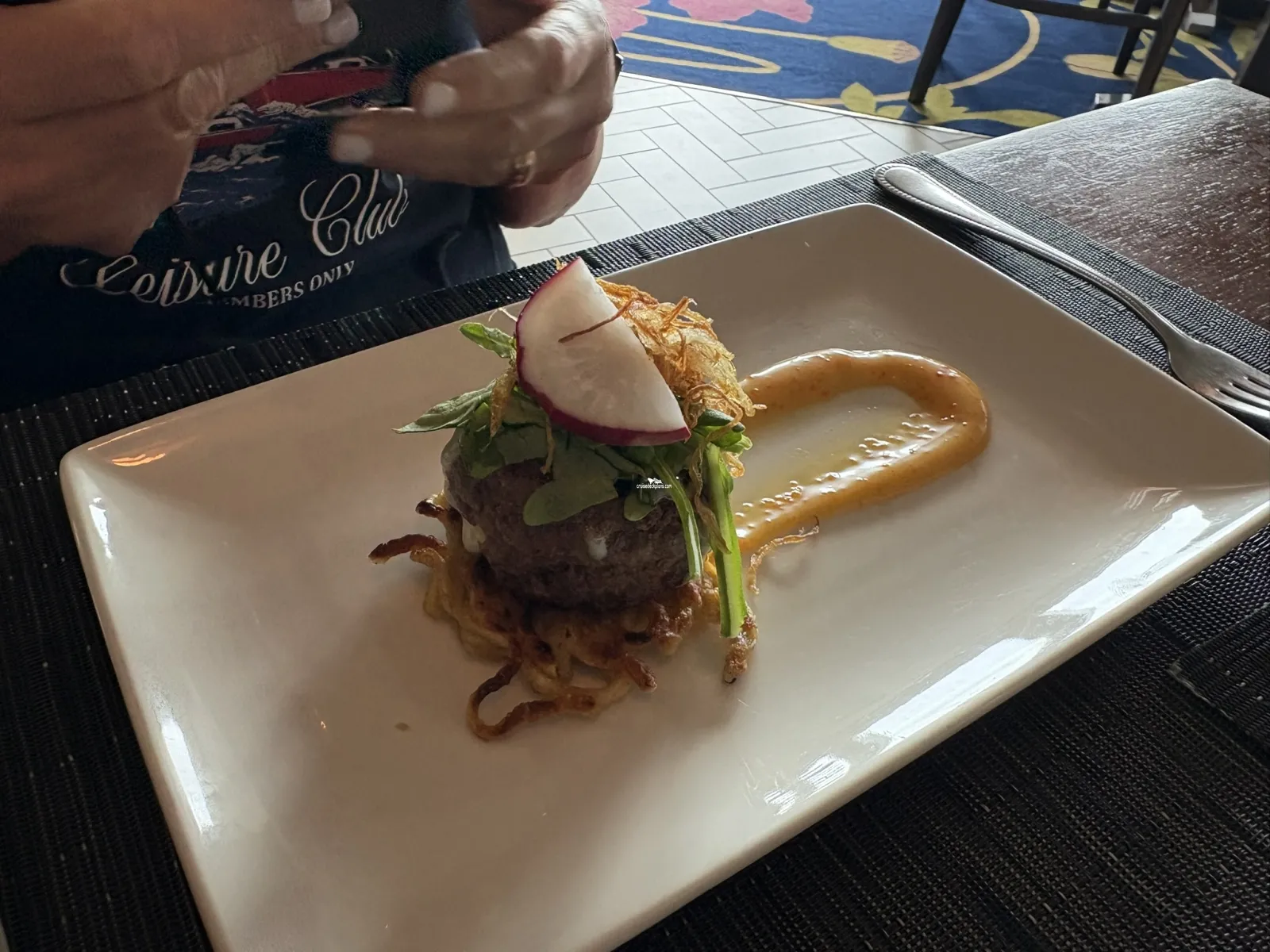 Outside walking and observation area. This does not circle around and much of the deck is obstructed by lifeboats. However still a good area to stroll and get fresh air.Fine Cut Steakhouse