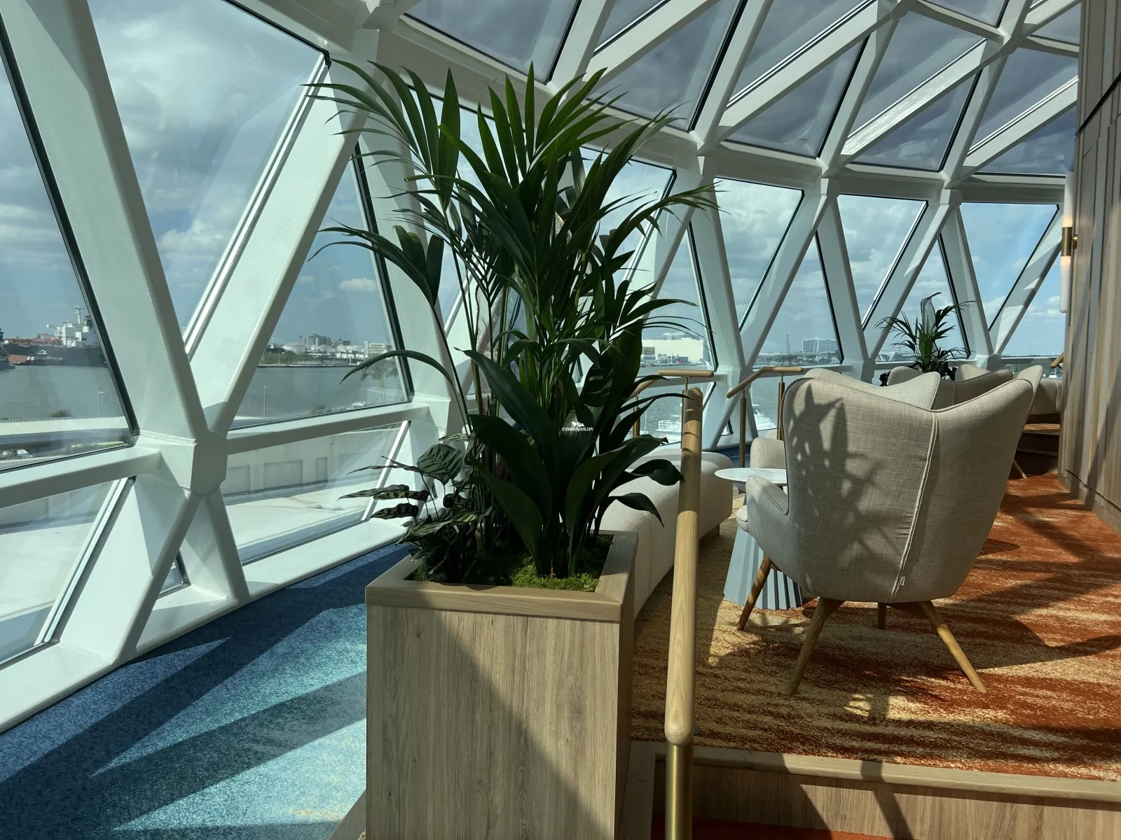 A la Carte pricing dining open for lunch and dinner and serves seafood and includes a raw bar. Seats 79. Features oysters, crab and lobsters. When the Magic Carpet is positioned on deck 5 this will also feature more casual offerings like Shrimp Salad, Lobster Roll, Sushi and Sashimi.Oculus Theater